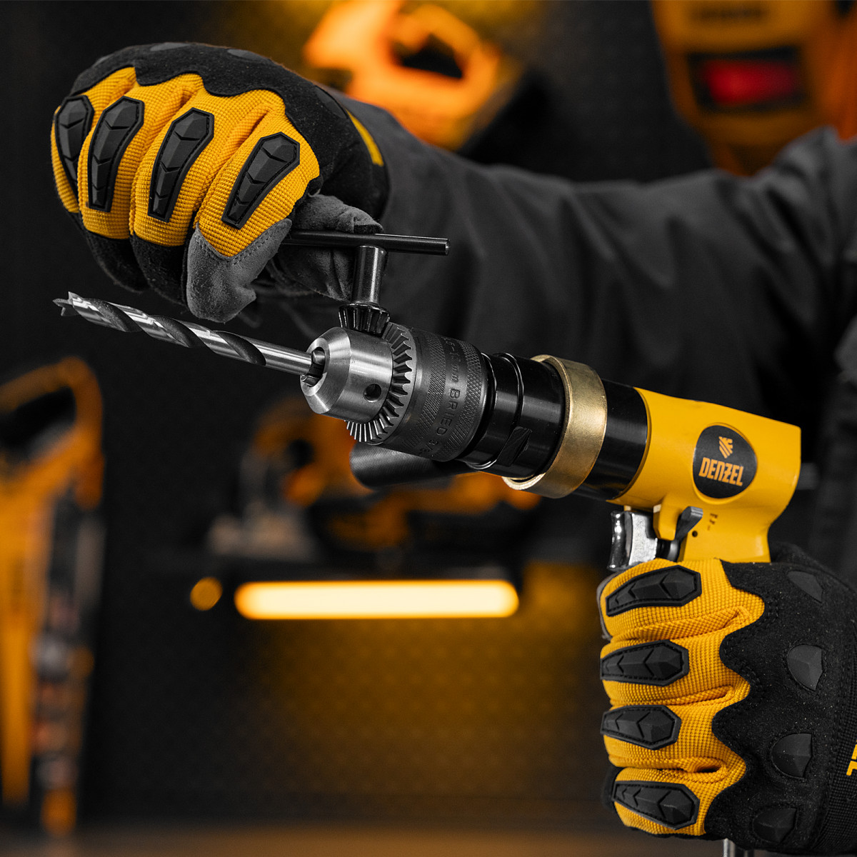 Пневматическая дрель PD500, 500 об/мин, 114 л/мин, 13 мм Denzel