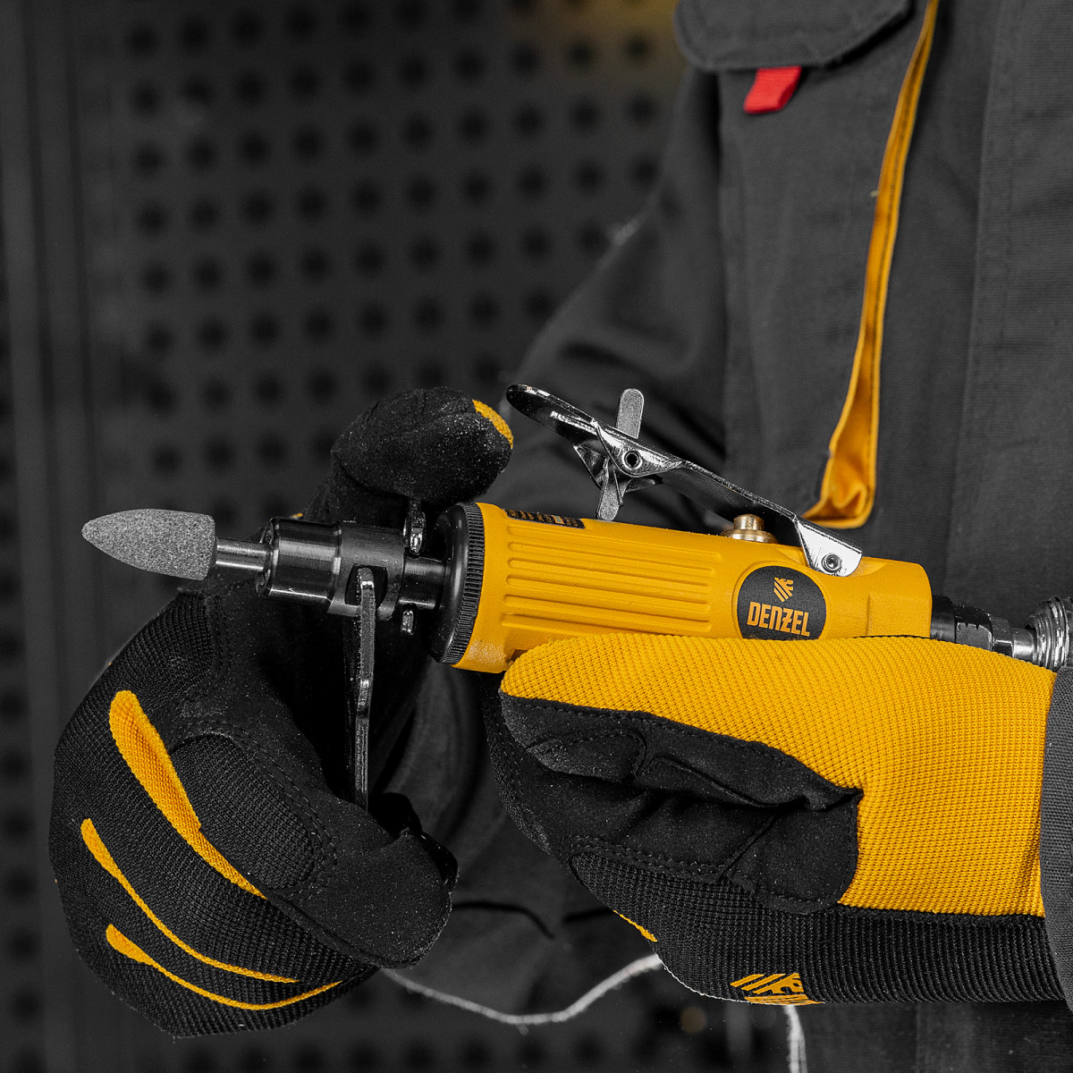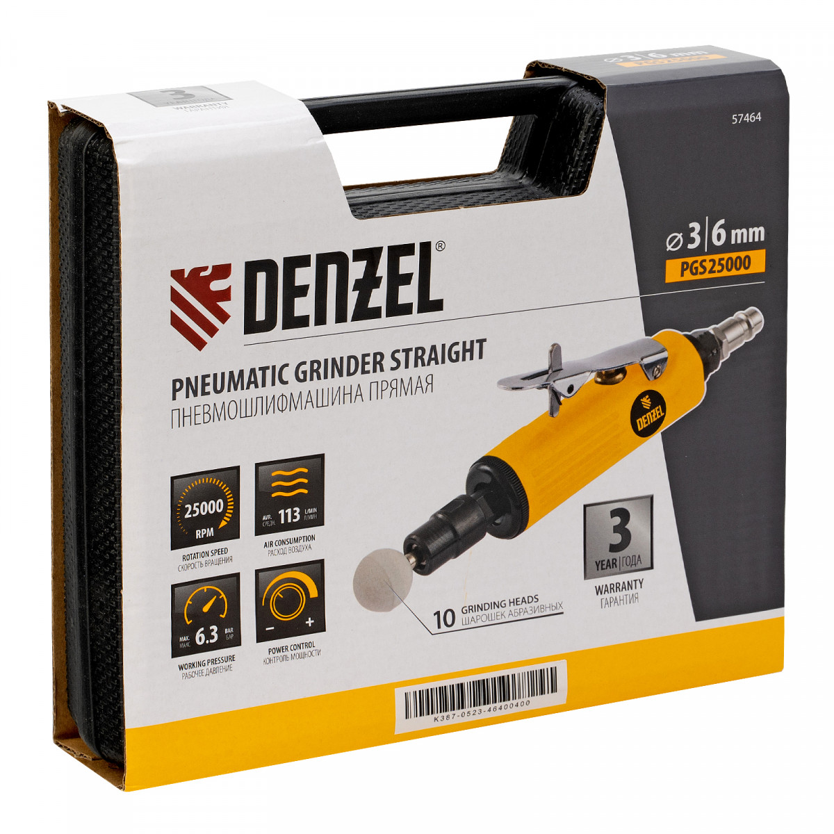 Пневмошлифмашина прямая PGS25000, 25000 об/мин, 10 шлиф. камней, цанга - 3, 6 мм, 113 л/мин Denzel