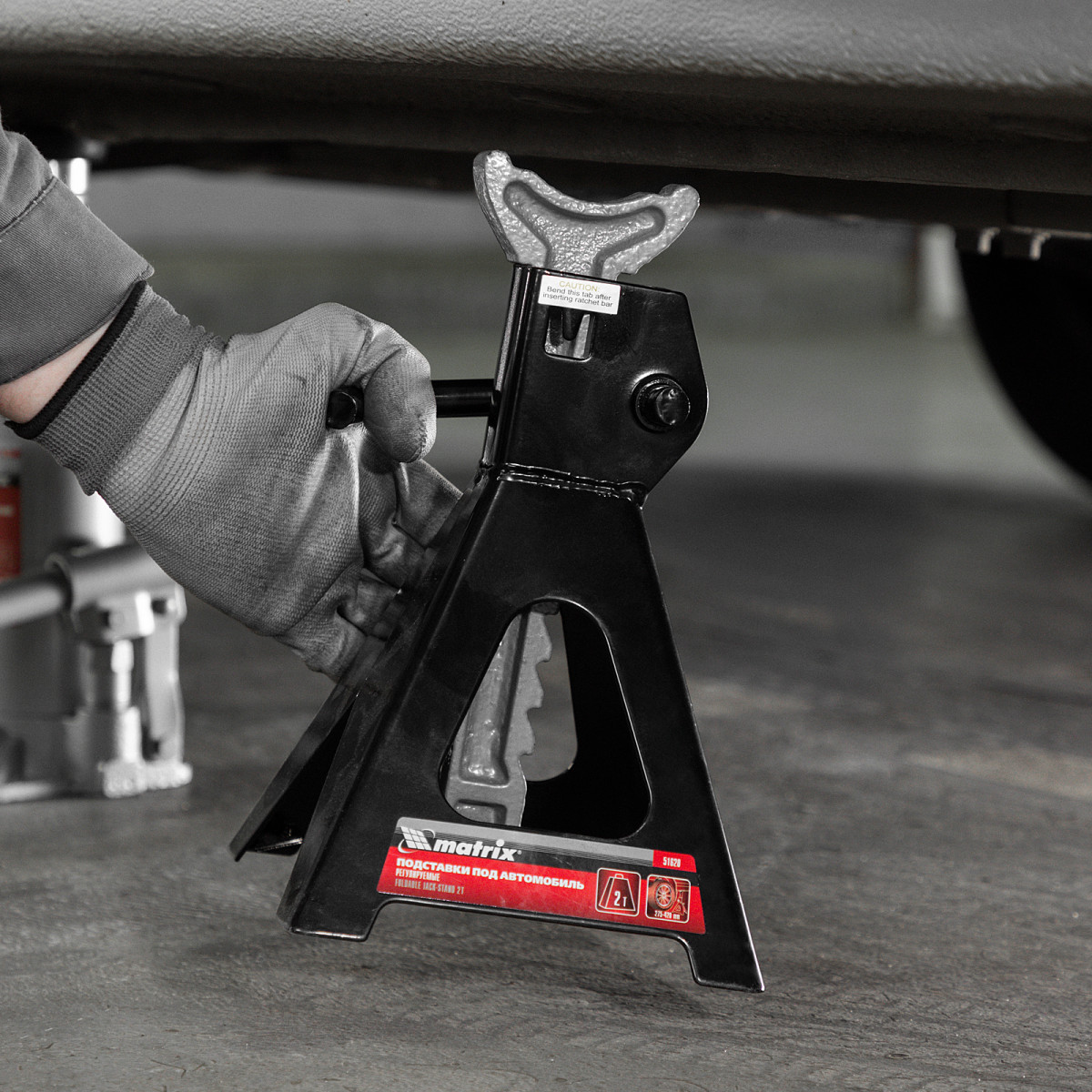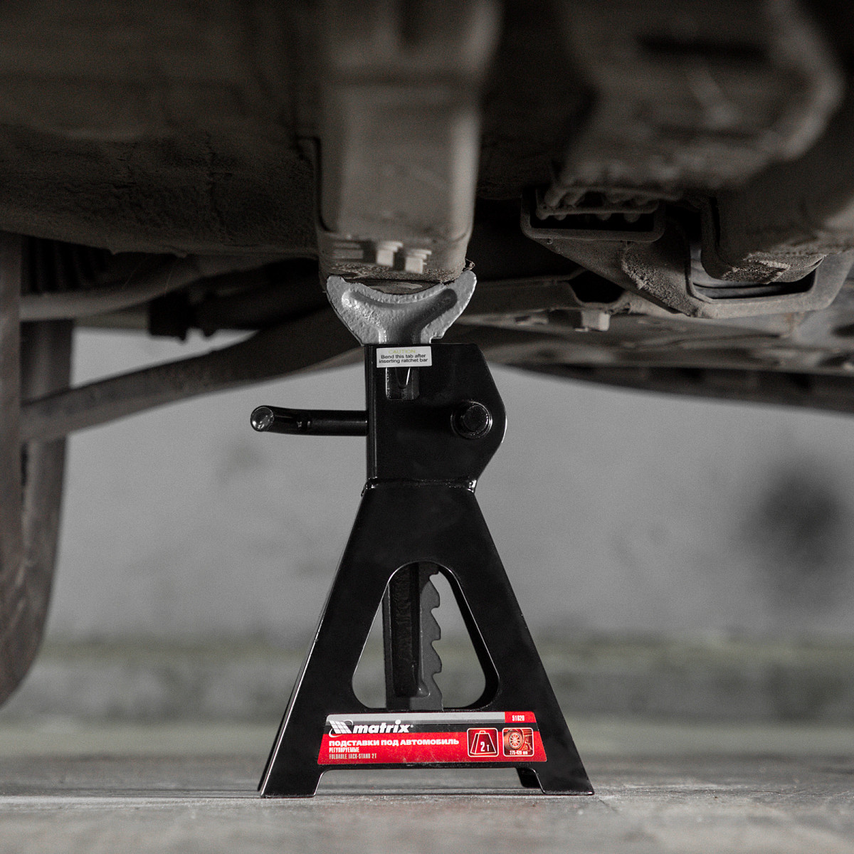 Регулируемые подставки под автомобиль Matrix 51620 с несущей способностью 2 т, 2 шт. в комплекте, удерживают груз на высоте 275-420 мм. Их используют в качестве средства дополнительной фиксации и страховки легкового автомобиля, поднятого на подъемнике или домкрате. Конструкцией предусмотрен зубчатый механизм, надежно удерживающий шток в выдвинутом положении. Подставки пригодятся в гараже или автосервисе во время проведения ремонтных работ.
