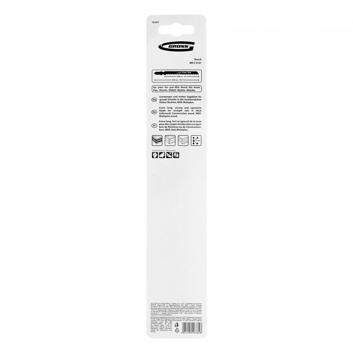 Полотна по дереву Gross 3157 78287, 2 шт. в упаковке, — сменные режущие элементы для электролобзика. Обеспечивают высокую скорость реза мягкой и твердой древесины, а также пластика толщиной 5-200 мм. Полотна пригодятся профессиональным мастерам для выполнения строительных и ремонтных работ, а также работникам коммунальных служб и садоводам для обрезки сучьев деревьев.