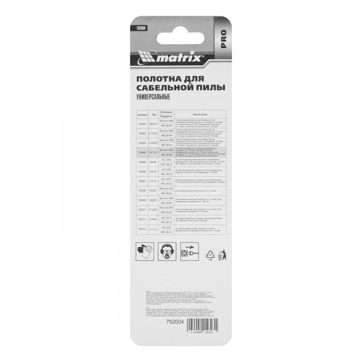 Полотна универсальные для сабельной пилы S611DF 125/4.3 мм, Bimetal, 2 шт, Pro Matrix
