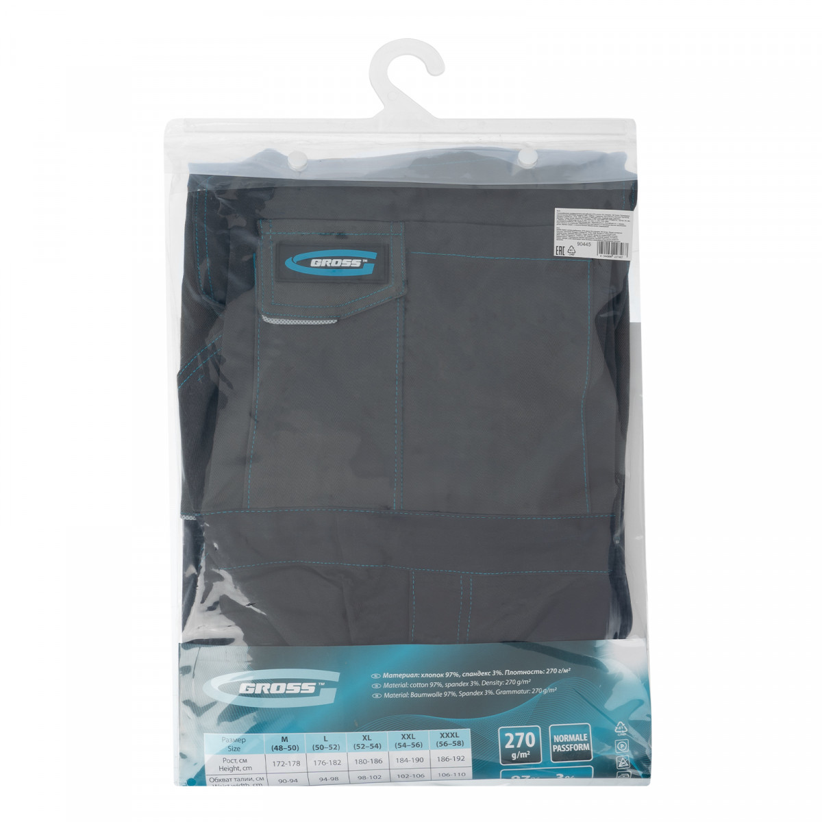 Полукомбинезон профессиональный рабочий, 97% хлопок 3% спандекс, XXL Gross