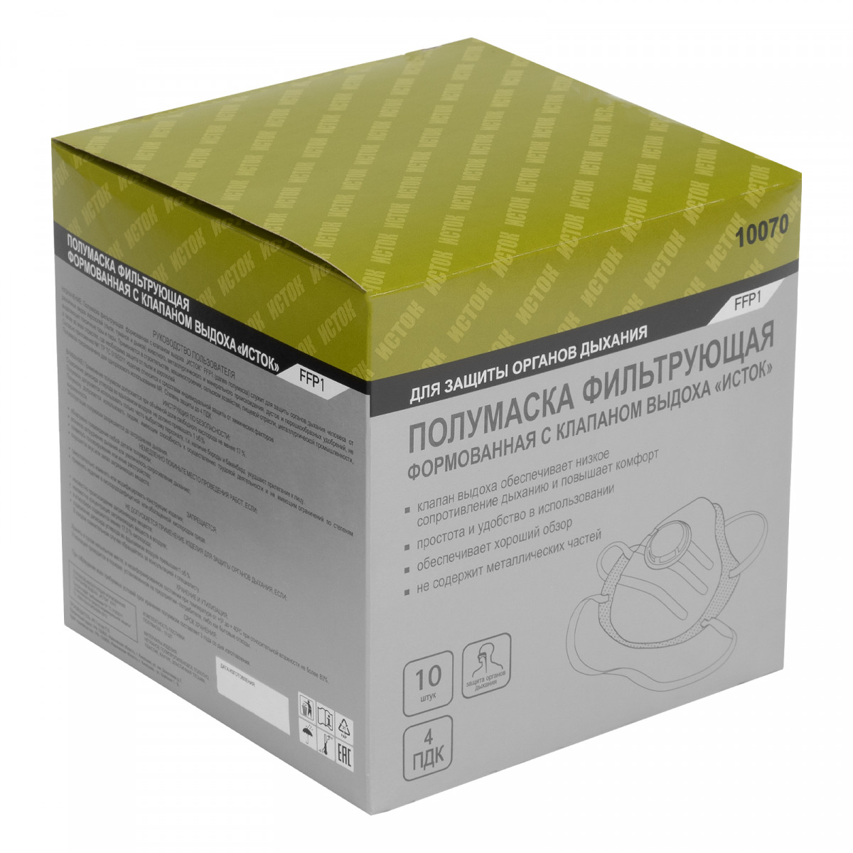 Полумаска фильтрующая формов,модель"Исток",с угольным слоем,с клапаном выдоха, FFP1 NR, 10шт