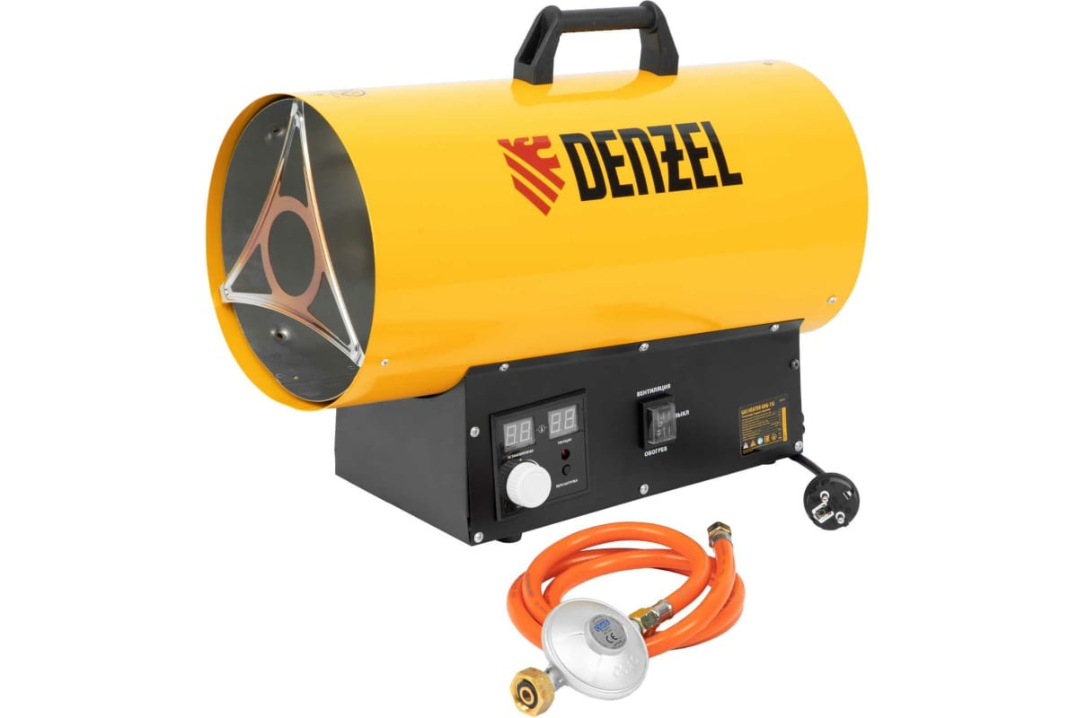 Газовая тепловая пушка Denzel GHG-50, 50 кВт, 1400 м3/ч, пропан-бутан 96480 имеет высокую тепловую мощность и применяется для работы в мастерских, гаражах, строящихся объектах, теплицах, фермах и на складах.