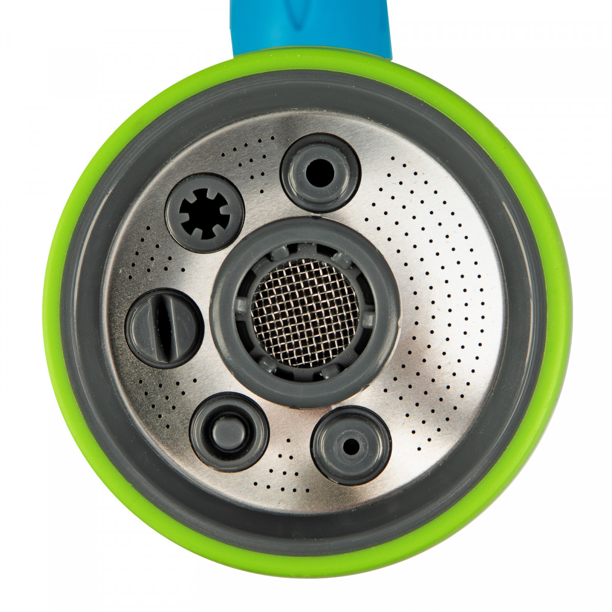 - 7 режимов полива — конусное, вертикальное и горизонтальное распыление, жесткая струя, веер, душ, туман.