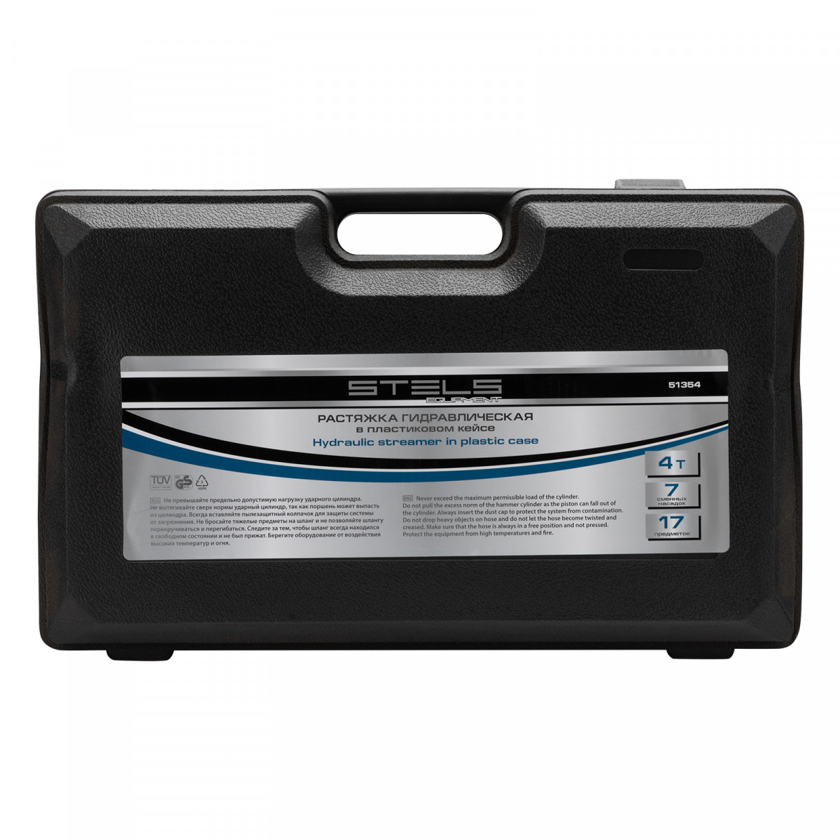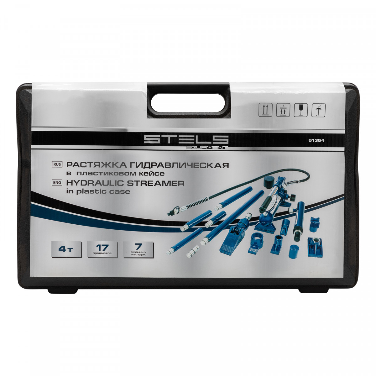 Растяжка гидравлическая, 4 т, набор из 17 предметов, 7 сменных насадок, в пластиковом кейсе Stels
