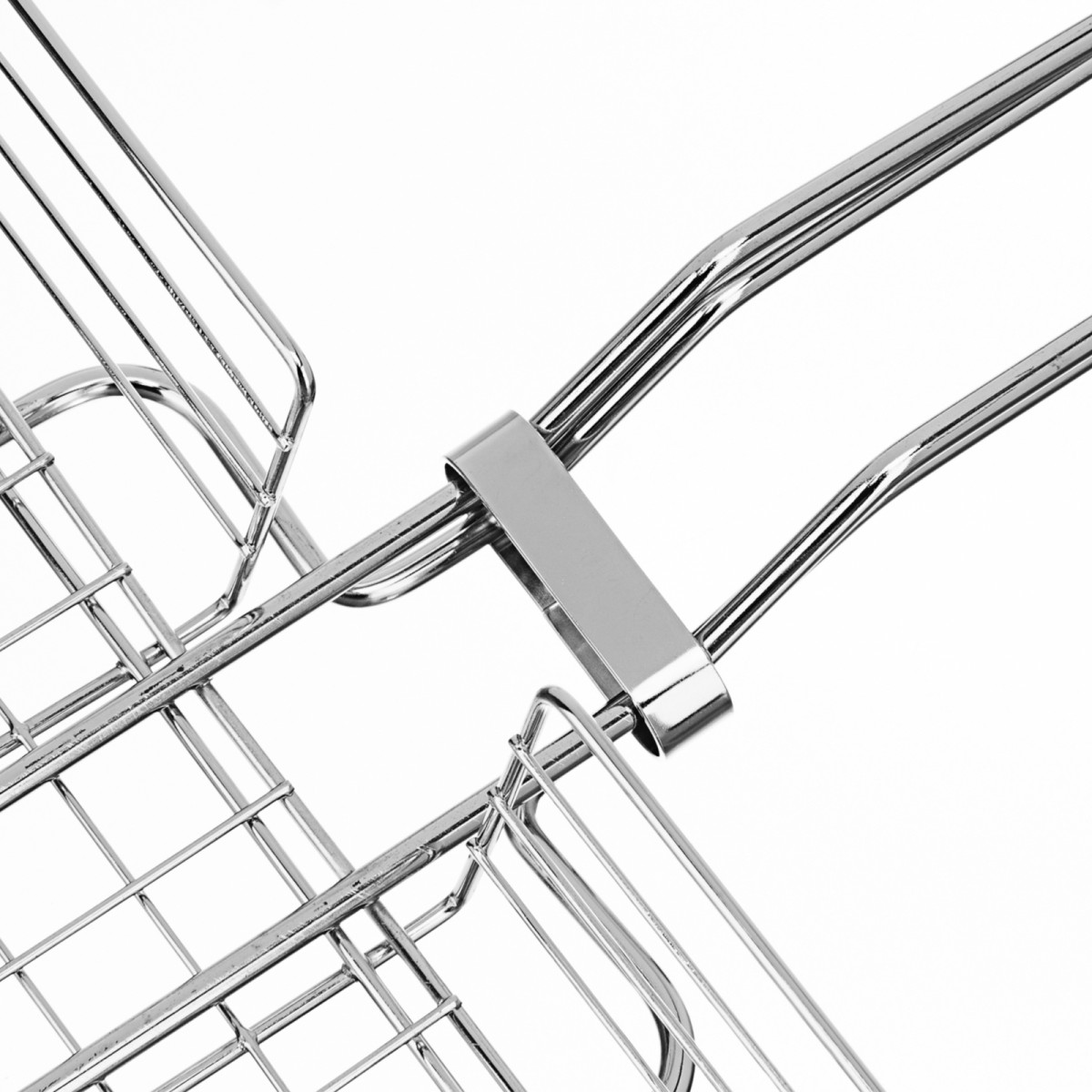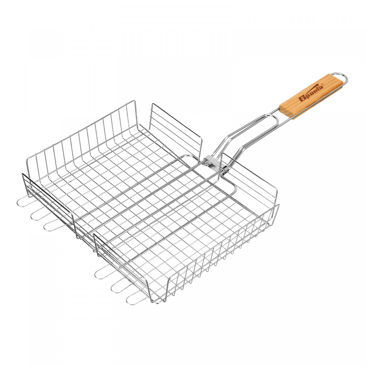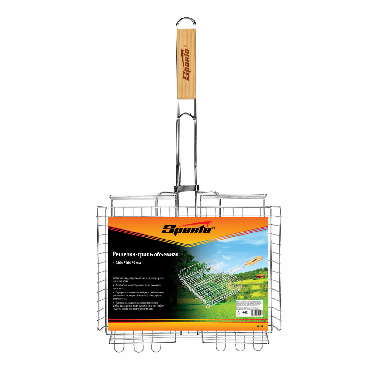 Объемная хромированная решетка-гриль Sparta 69553 размером 240 х 310 х 55 мм используется для удобного размещения продуктов и их приготовления на углях. С ее помощью мясо, рыба или овощи обжариваются равномерно с двух сторон, что позволяет получить вкусные блюда. За счет регулировки высоты решетки возможно приготовление продуктов любого размера без потери сока.