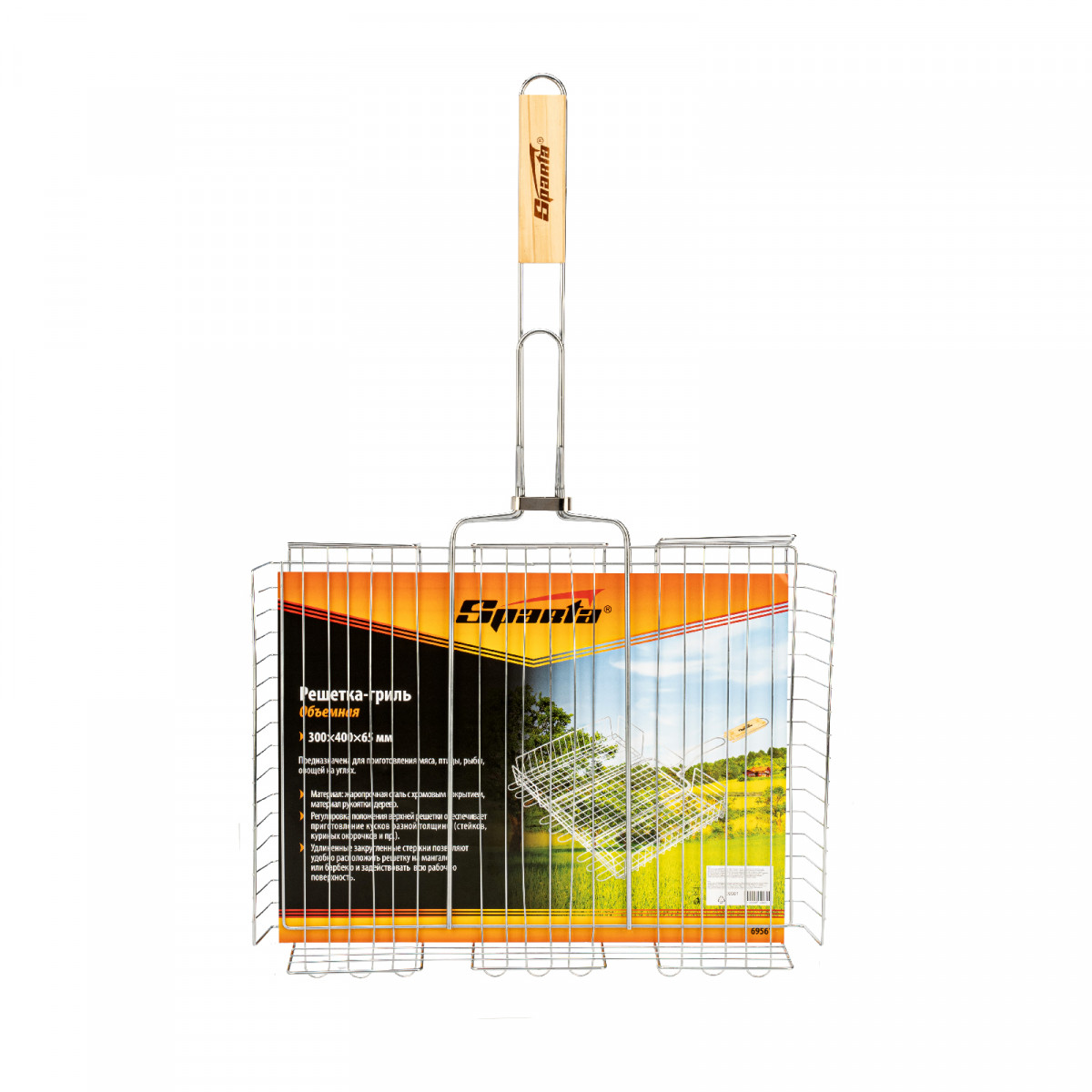 Объемная хромированная решетка-гриль Sparta 69561 размером 300 х 400 х 65 мм используется для удобного размещения продуктов и их приготовления на углях. С ее помощью мясо, рыба или овощи обжариваются равномерно с двух сторон, что позволяет получить вкусные блюда. За счет регулировки высоты решетки возможно приготовление продуктов любого размера без потери сока.