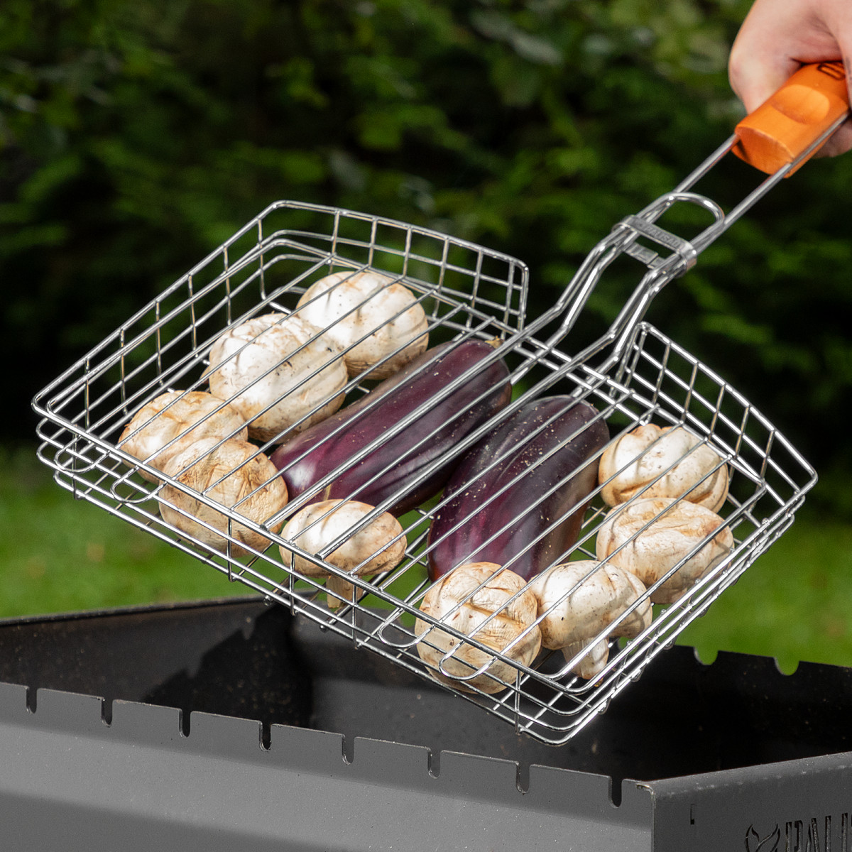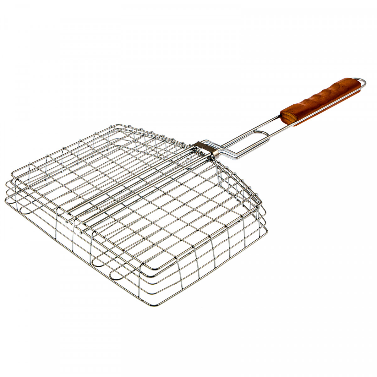 - За счет увеличенных опорных стержней решетка надежно фиксируется на мангале, а для жарки используется вся рабочая площадь.