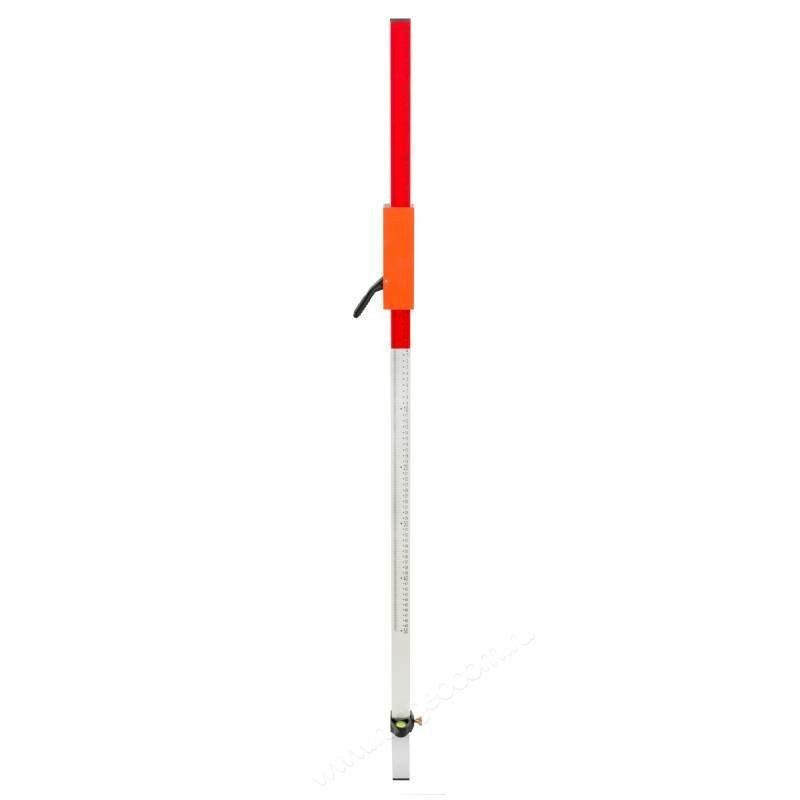 Рейка нивелирная RGK LR-2 предназначена для использования с лазерными уровнями любых типов и служит для плавного перемещения приемника излучения по вертикальной оси. Этот инструмент упрощает работу на больших расстояниях и при ярком солнечном свете. Применение Телескопическая рейка высотой 2.4 м. значительно упрощает проведение таких операций, как измерение перепадов высот, вертикальную планировку и обмер перед устройством фундамента, наливного пола, разбивку лестниц и др. Этот прибор позволяет работать в одиночку, без помощника и избавляет от необходимости лишних расчетов - все относительные отклонения при переходе от одной точке к другой определяются с точностью до миллиметра. Принцип работы Измерительная шкала нивелирной рейки RGK LR-2 поделена на 2 части условной нулевой отметкой, диапазон нивелирования составляет ± 50 см, при этом верхняя его часть окрашена в контрастный красный цвет для упрощения восприятия. Приемник крепится на специальный подвижный держатель, который надежно фиксируется в нужном по