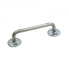 Ручка-скоба для деревянных окон и дверей. Материал - цинкованная сталь. Расстояние между креплениями - 105 мм, диаметр накладок - 34 мм, высота ручки - 30 мм. Крепеж в комплект не входит.