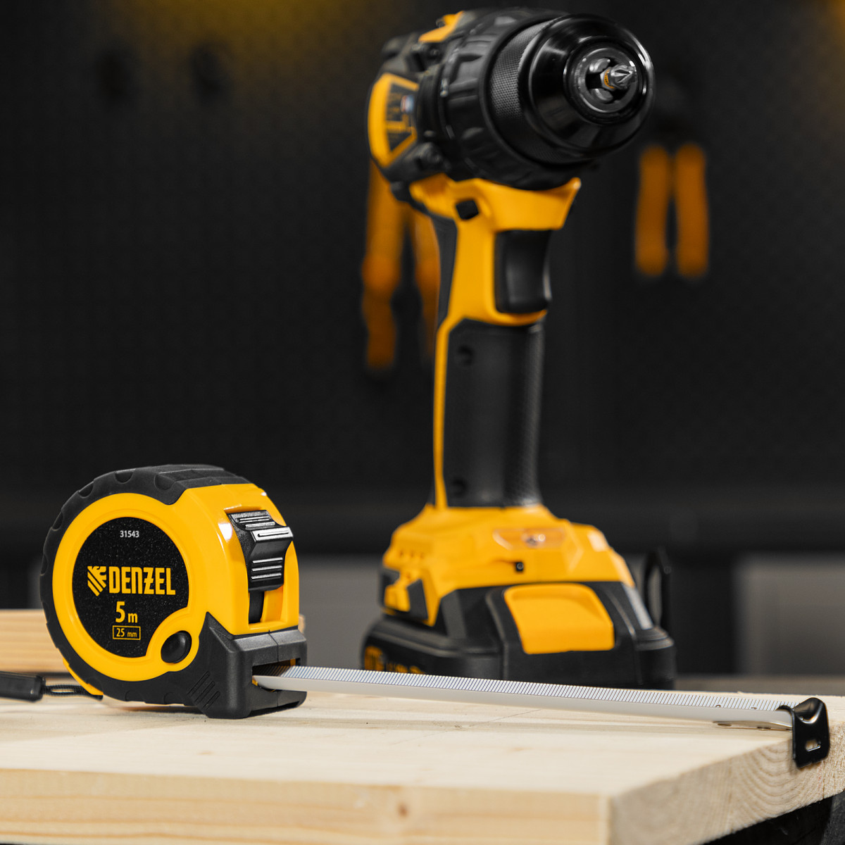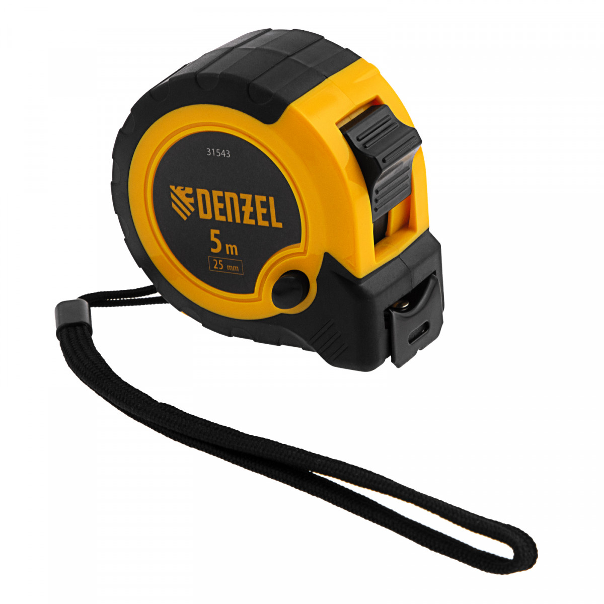 Рулетка 5м х 25мм, двухкомп. корпус, кнопка-пауза Denzel