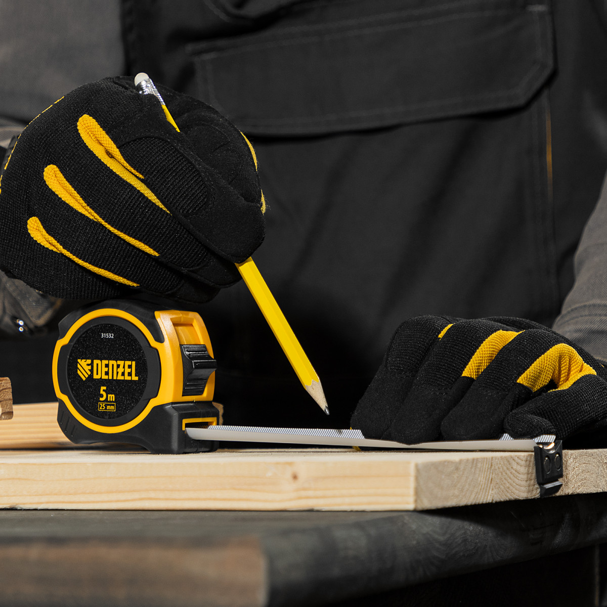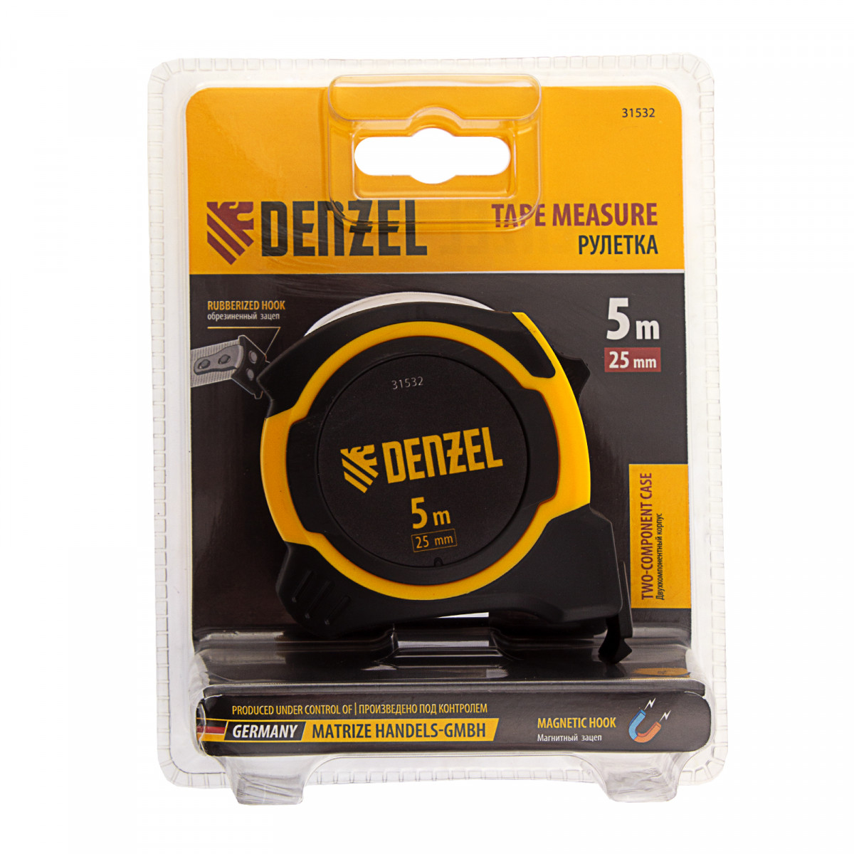 Рулетка 5м х 25мм, двухкомп. корпус, магнитный обрезиненный зацеп Denzel