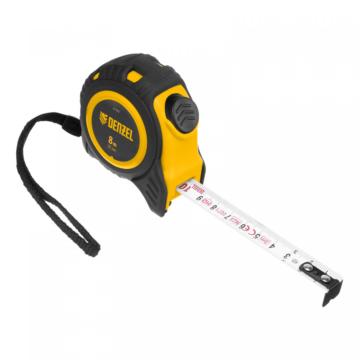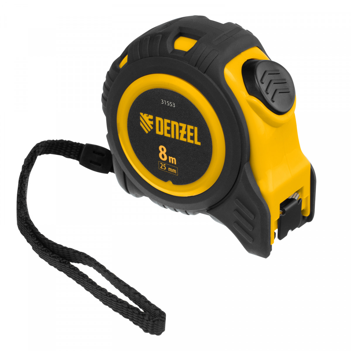 Рулетка 8м х 25мм, обрезиненный корпус, автоматическая фиксация Denzel