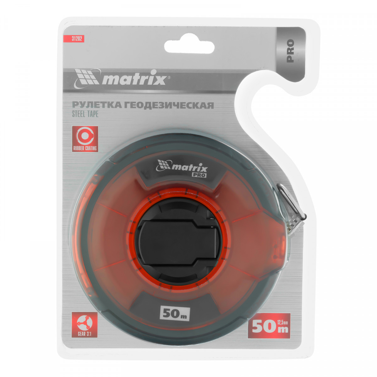Рулетка геодезическая 50 м х 12,5 мм, закрытый корпус, стальная лента, односторонняя шкала, Pro Matrix