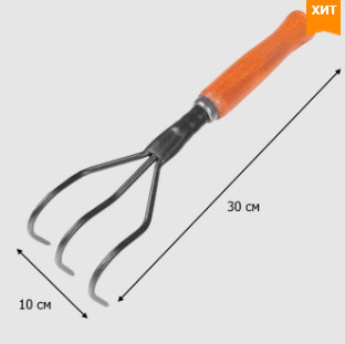 Используют для рыхления и аэрации почвы. Рабочая часть выполнена из высококачественной стали.Защитное покрытие обеспечивает длительный срок службы.Удобная деревянная ручка. Размер издели 30х10 см.