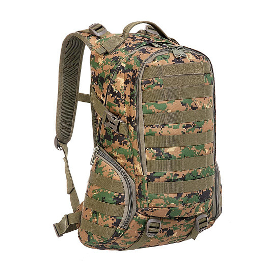 Тактический рюкзак 25л для активного отдыха. Изготовлен из ткани Оксфорд 600 D высокой прочности, с водоотталкивающей пропиткой.Особенности:• Имеет большое отделение с двумя внутренними кармашками, один из которых на «молнии» и карабин для подвески ключей.