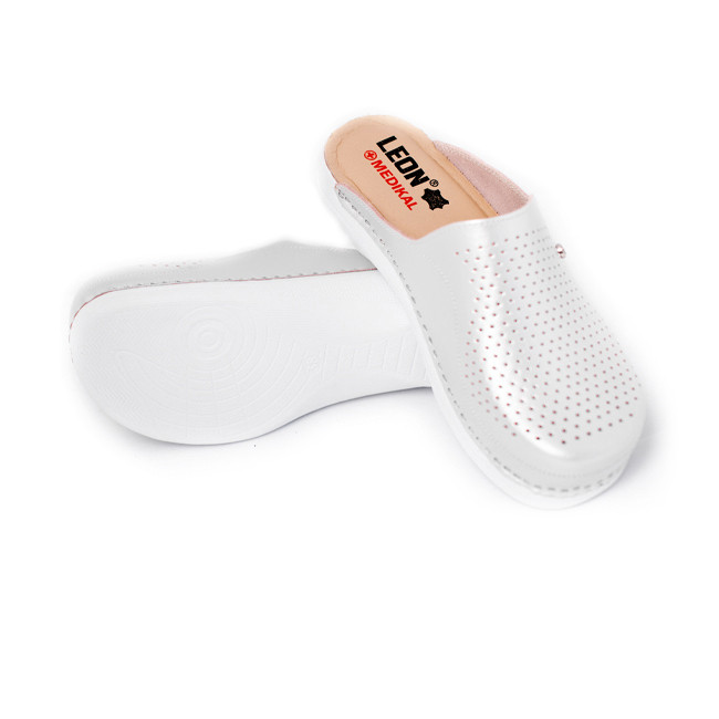 Сабо Леон - женские медицинские сабо MED100 разработанные в Европе с участием врачей ортопедов. Верх и подкладка обуви из натуральной кожи, применена кожаная ортопедическая стелька. Слой массажной пены с памятью под стелькой принимает форму вашей ступни и дает опору, подходящую именно вам. Это обеспечивает человеку максимальный комфорт и снижает нагрузку на суставы и позвоночник.Сабо медицинские, они подходят как профессиональная обувь для врачей, поваров и всех, кому приходиться много времени проводить на ногах. При носке значительно уменьшается отечность ног и улучшается кровообращение.Легкая полиуретановая подошва, оснащена амортизационной вставкой, что уменьшает усталость ног. Антискользящая основа позволит чувствовать себя уверенно на кафеле и паркете.Верх обуви изготовлен из мягкой 100% кожи, устойчивой к износу. Она не впитывает влагу и запахи, ее легко мыть. Перфорация обеспечивает хорошую вентиляцию и ноги остаются сухими. Выбор профи.