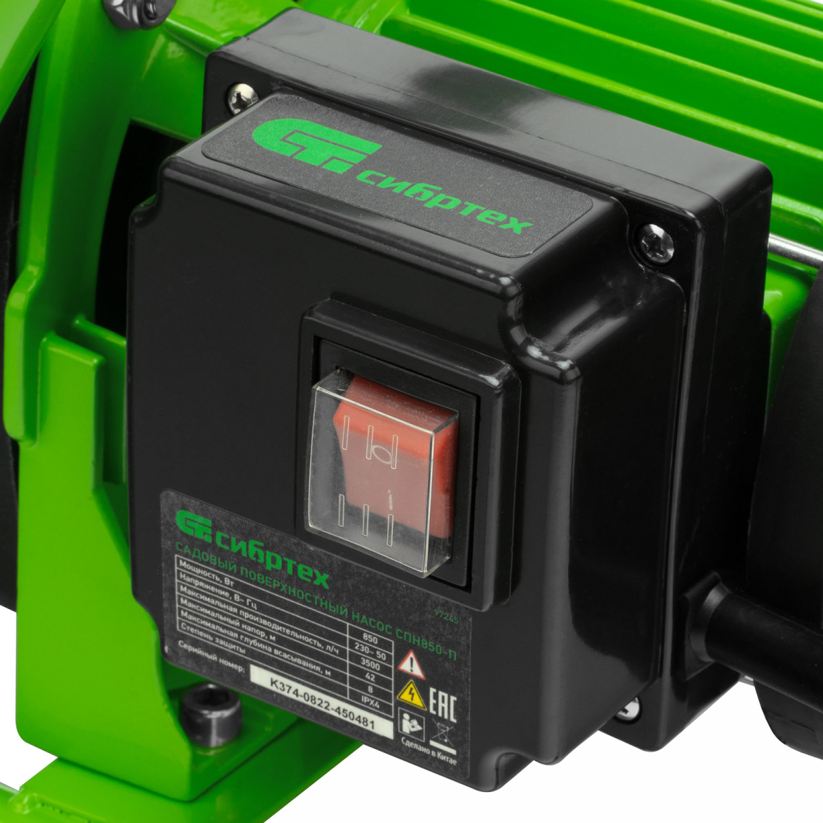 Садовый поверхностный насос Сибртех СПН850-П 97245 мощностью 850 Вт и производительностью 3500 л/ч, с корпусом насосной части из пластика, может забирать воду с глубины до 8 м из колодцев, водоемов и накопительных емкостей, создавая напор до 42 м. Используется для подачи воды на кухню, в душ или баню загородного дома, легко справляется с подачей воды на верхние этажи. Применяется также в системах орошения.