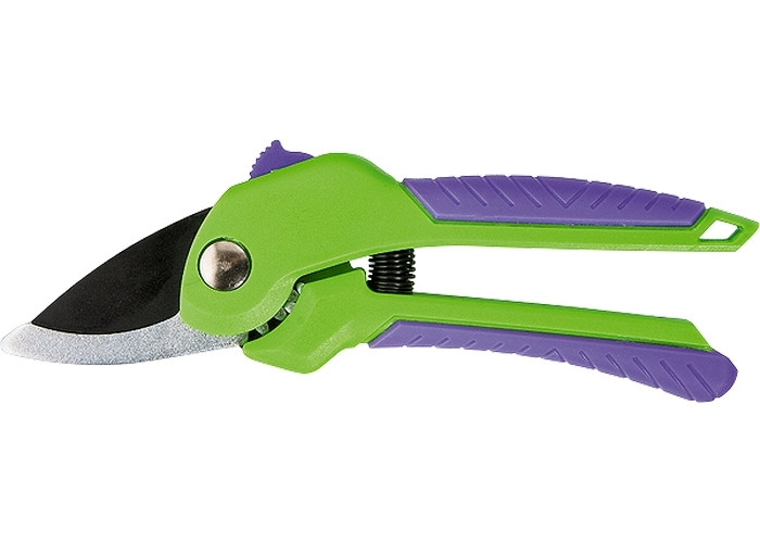 Секатор с двухкомпонентными рукоятками и верхним лезвием из стали У8, покрытой тефлоном, прямой рез. Шестеренная передача увеличивает усилие реза до 20%. Предназначен для обрезки живых веток деревьев и кустарников диаметром до 22 мм.