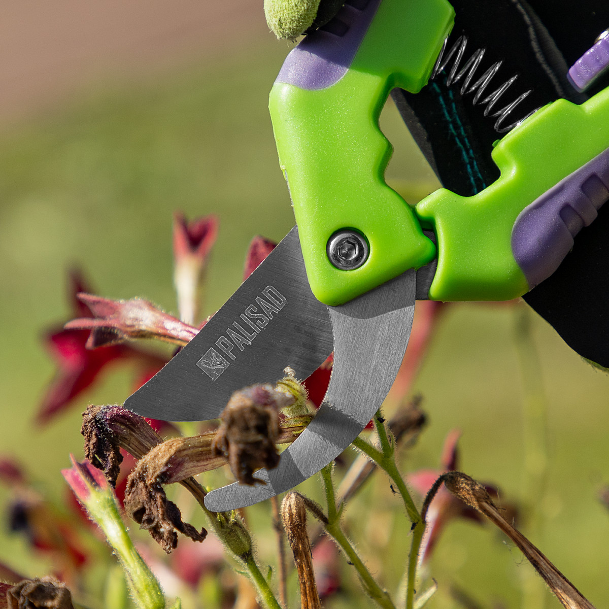 Секатор прямого реза Palisad 60498 длиной 150 мм, с двухкомпонентными рукоятками, используется для формирования крон бонсай и топиариев, а также для ухода за комнатными растениями и овощными культурами. Подходит для срезания живых веток и побегов толщиной до 12 мм. Движущиеся в параллельных плоскостях лезвия производят ровный аккуратный срез с минимальными повреждениями растения. Плотность смыкания лезвий регулируется винтом. Секатор для бонсай будет полезен дома и на даче.