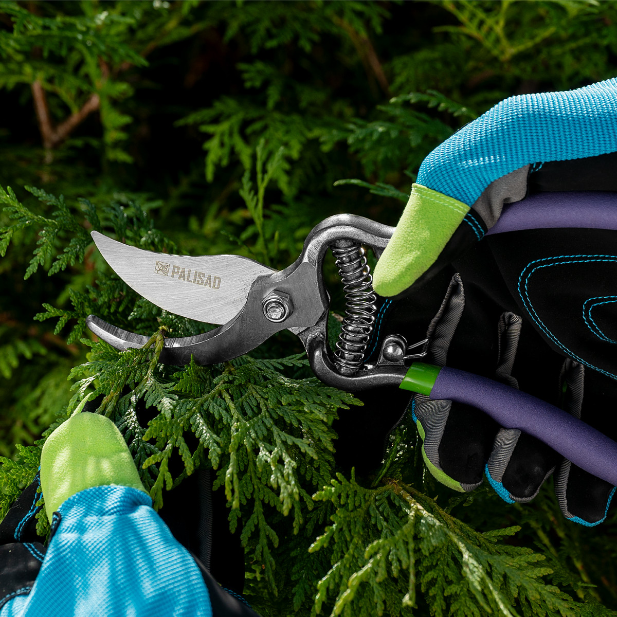 Цельнометаллический секатор прямого реза Palisad 60492 — инструмент для обрезки живых веток диаметром до 25 мм, использующийся для ухода за растительностью на дачном участке. Лезвия, движущиеся в параллельных плоскостях, производят ровный и чистый срез, минимально повреждая растение. Плотность смыкания лезвий можно отрегулировать при помощи винта.