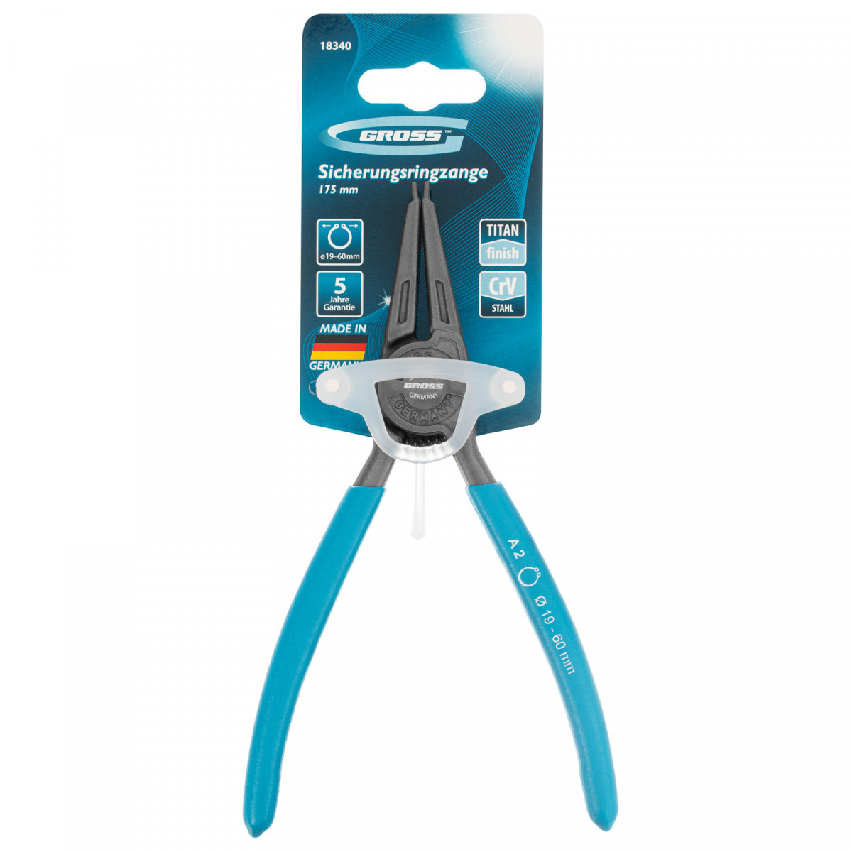 Съемник, 175 мм, для внешних стопорных колец (19-60 мм) прямые губки (разжим) Gross