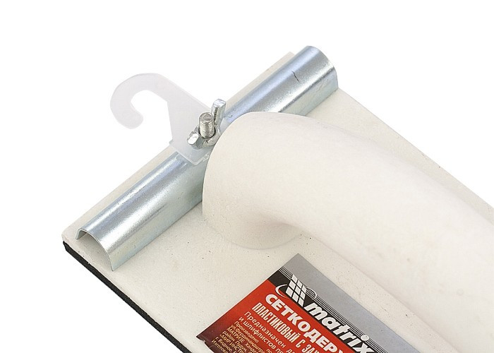 Пластиковый сеткодержатель Matrix 75852 с подошвой 230 х 105 мм, с зажимами, используется для ручного шлифования деревянных, шпатлеванных, металлических, пластмассовых и прочих твердых поверхностей. Сеткодержатель фиксирует абразивную стеклосетку или шлифлист и позволяет удалять старые отделочные покрытия, подготавливать поверхность под покраску, а также выполнять чистовую обработку.