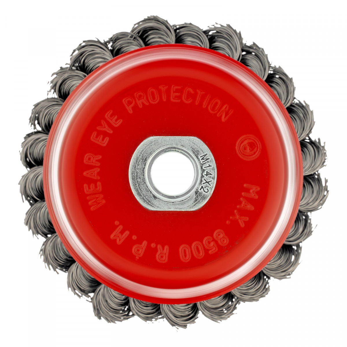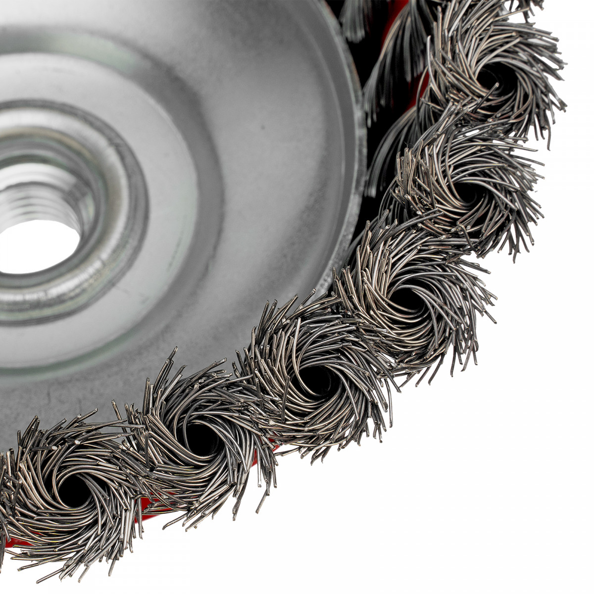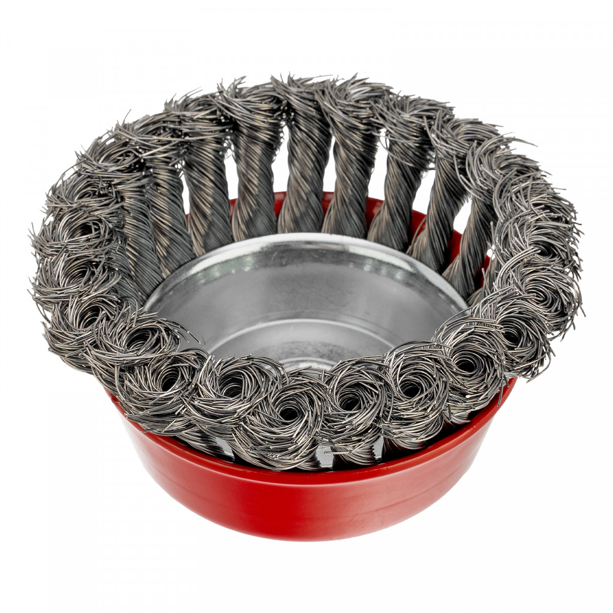 Щетка Matrix «Чашка» 74615 диаметром 100 мм, с присоединительной резьбой М14, с щетиной из крученой проволоки диаметром 0,35 мм, устанавливается на УШМ, поддерживающую работу со скоростью 8500 об/мин. Щетина предназначена для грубой (черновой) обработки поверхностей, менее агрессивной по сравнению с щетиной 0,5 мм. Изделие подходит для удаления загрязнений, снятия толстого слоя ржавчины, ЛКМ, зачистки сварных швов.