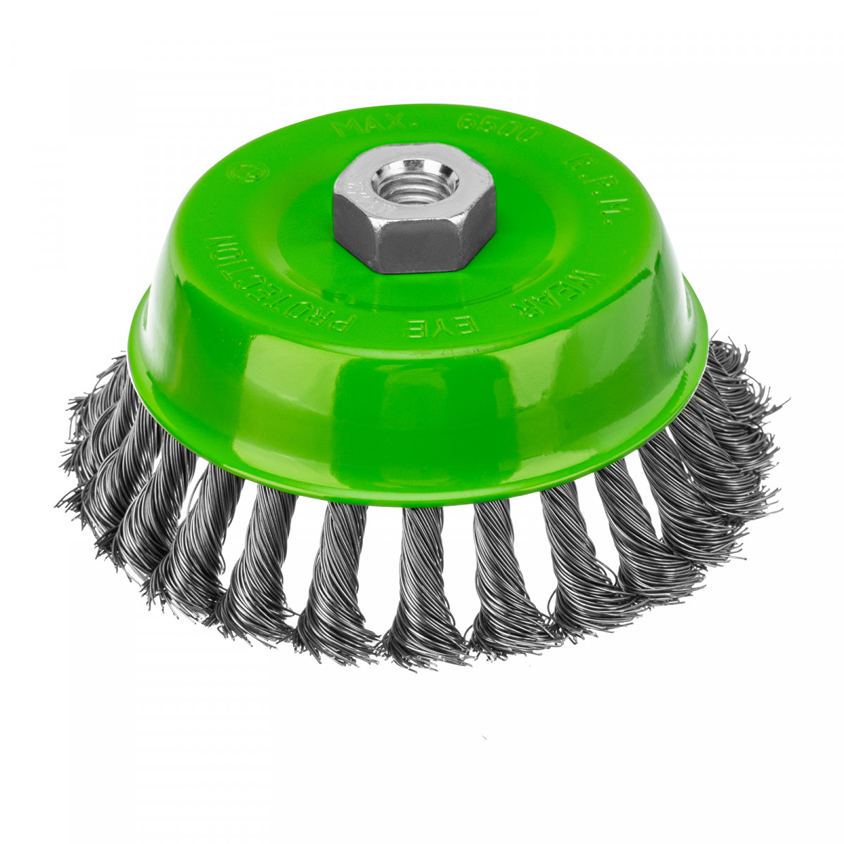 Щетка Сибртех «Чашка» 746277 диаметром 125 мм, с присоединительной резьбой М14, с щетиной из крученой проволоки диаметром 0,5 мм, устанавливается на УШМ, поддерживающую работу со скоростью 6500 об/мин. Изделие предназначено для грубой (черновой) обработки поверхностей и подходит для удаления загрязнений, снятия толстого слоя ржавчины, ЛКМ, зачистки сварных швов.