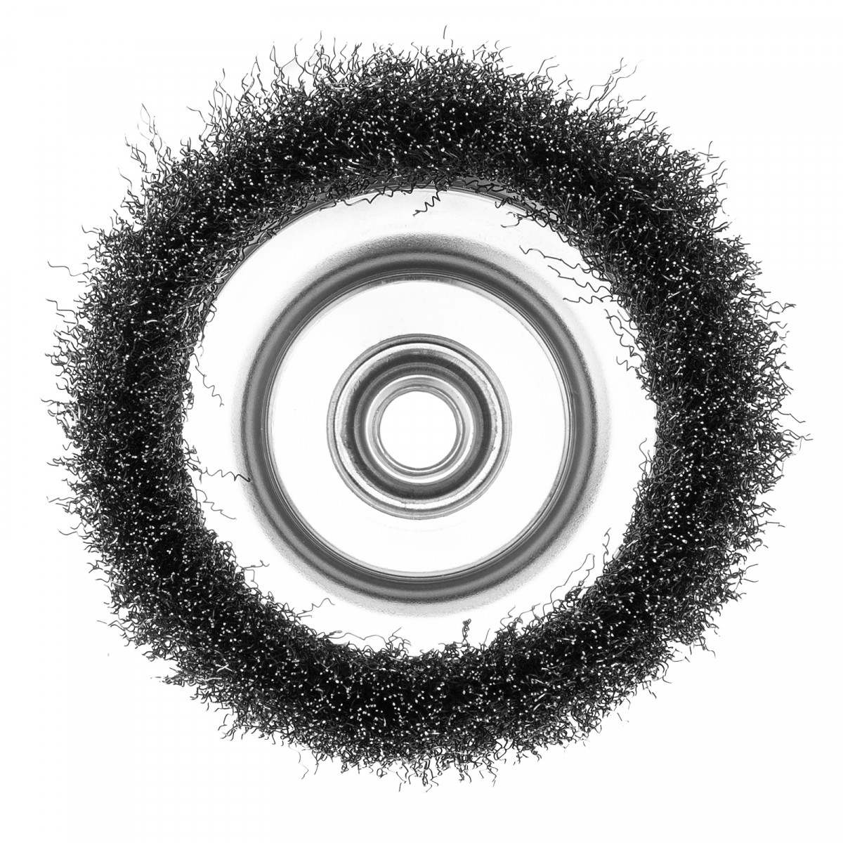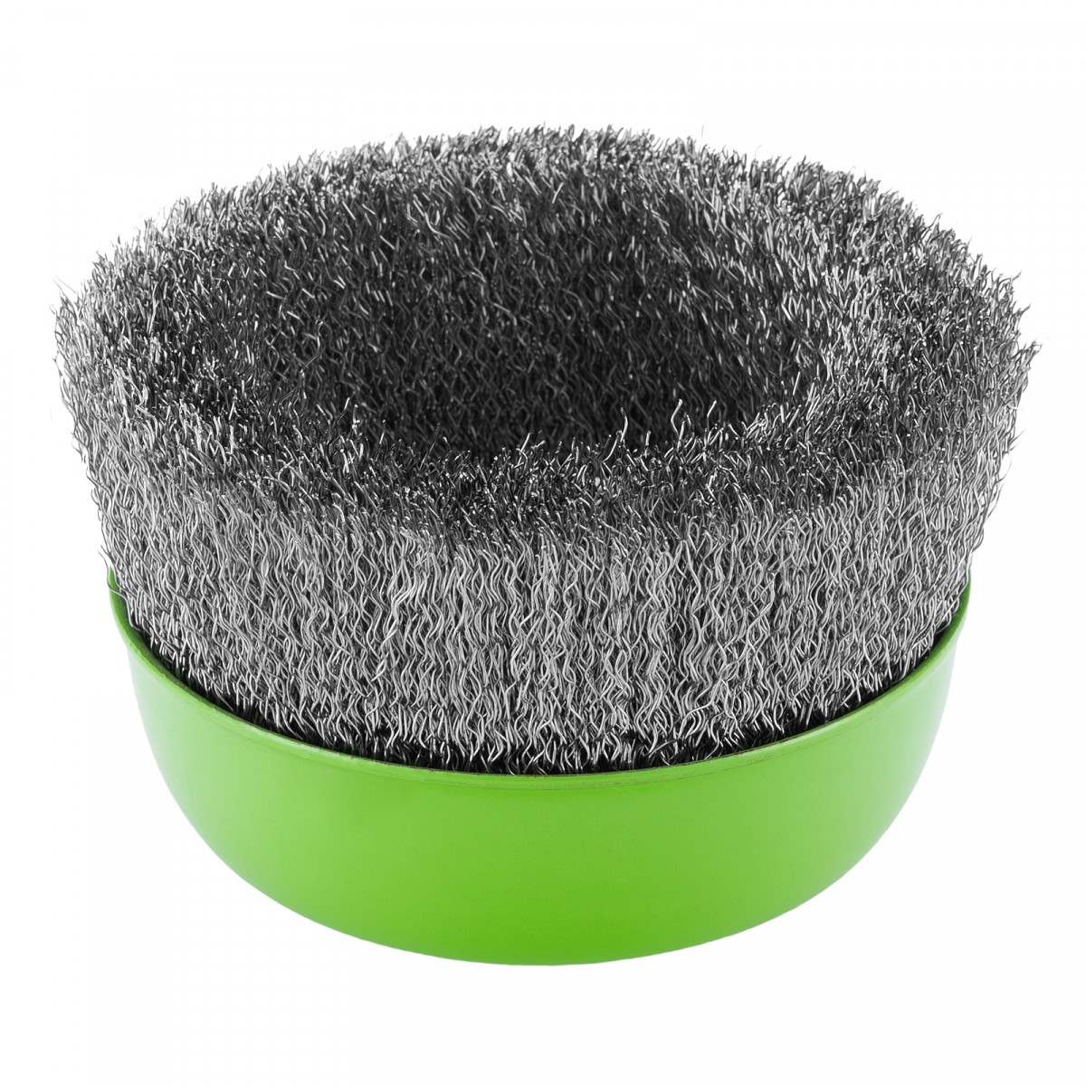 Щетка для УШМ Сибртех «чашка» 746067, М14, диаметром 125 мм, с щетиной из витой проволоки 0,3 мм, предназначена для постепенного снятия тонкого слоя материала с металлических, деревянных и пластиковых поверхностей. Удаляет ржавчину, загрязнения, а также остатки краски и других покрытий. Подходит для обработки участков значительной площади. Щетку устанавливают на вал углошлифовальной машины (УШМ), рекомендуемая максимальная скорость вращения 6500 об/мин. Работать с оснасткой следует в спецодежде.