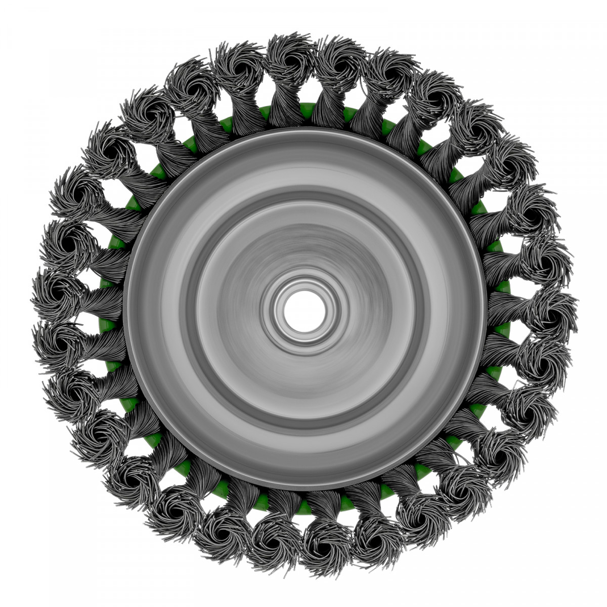 • Прочность и долговечность — щетина из крученой стальной проволоки выдерживает значительные нагрузки.