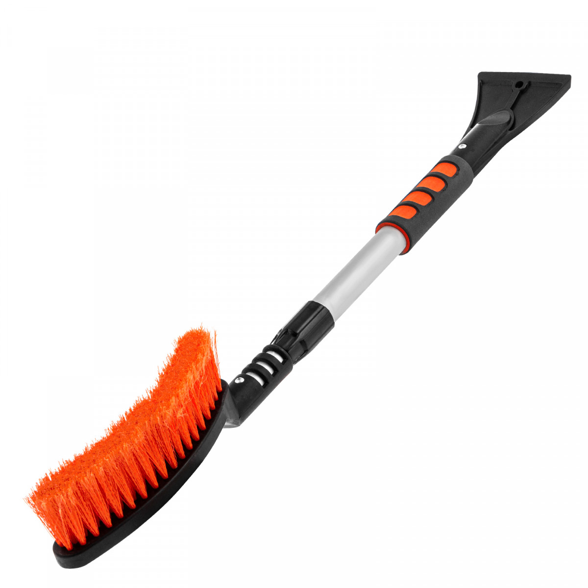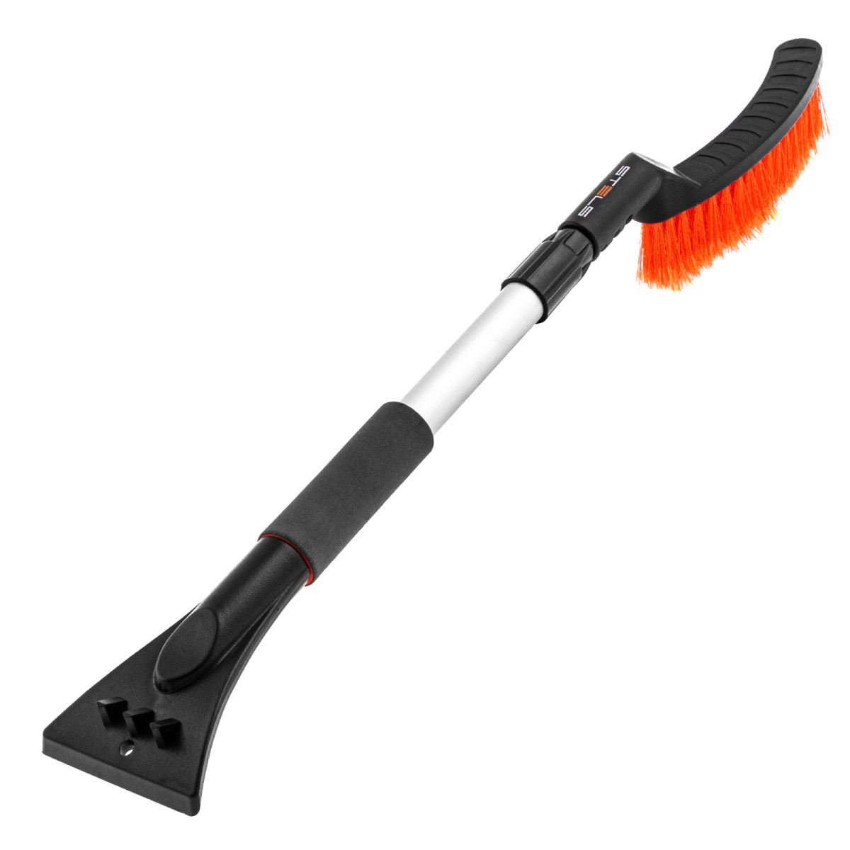 Телескопическая щетка-сметка для снега со скребком Stels 55304, длину которой можно увеличить с 700 до 920 мм, помогает быстро очистить автомобиль от снега и наледи. Раздвижная рукоятка облегчает чистку капота и крыши. Щетка будет полезна автолюбителям.