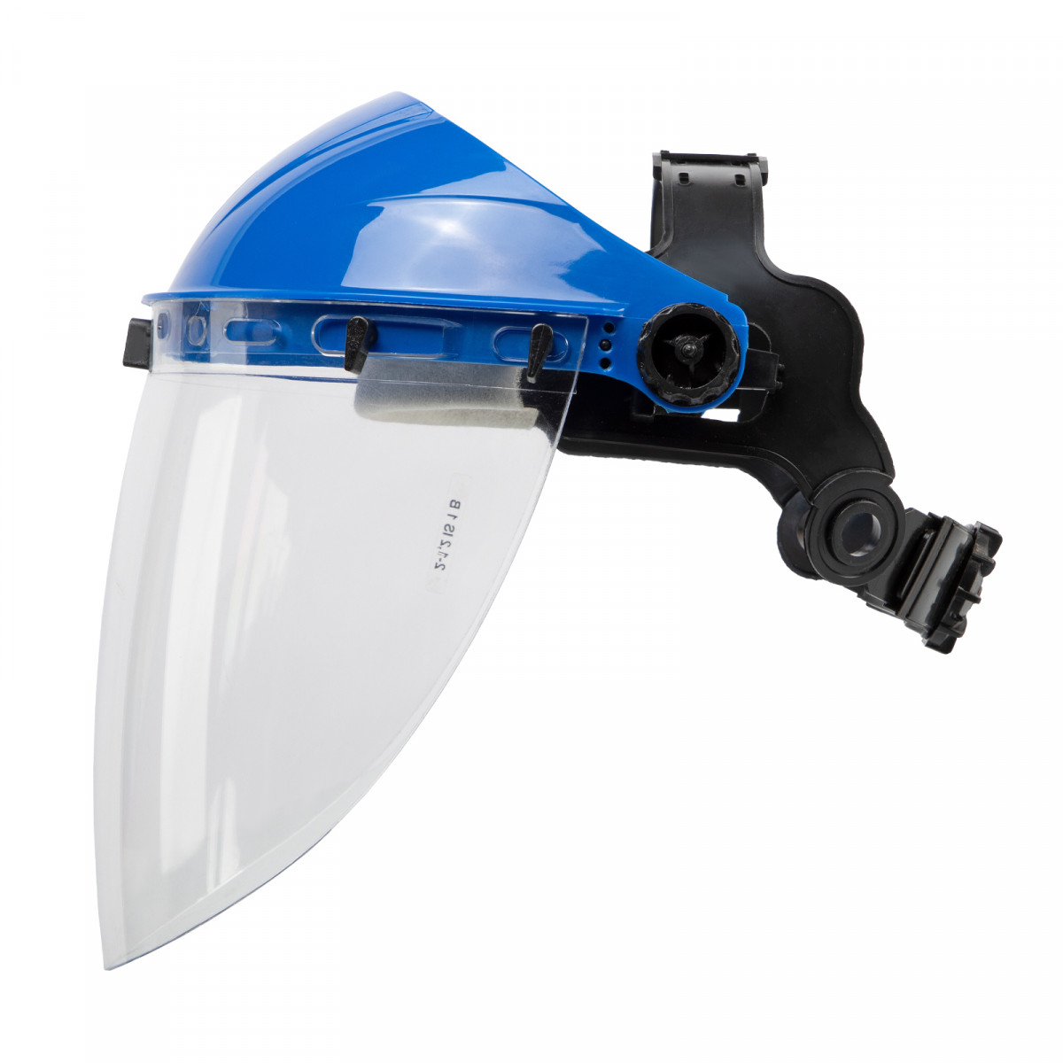 Защитный щиток Сибртех 89124 типа НБТ, размером 400 х 220 мм, из оптически прозрачного поликарбоната, имеет увеличенный экран и закрывает лицо рабочего, предохраняя его от искр, брызг неразъедающих жидкостей, а также твердых летящих частиц с высокой кинетической энергией до 14,9 Дж. Прозрачный экран, мягкий налобный обтюратор и регулируемое оголовье обеспечивают комфорт во время длительного ношения. Изделие используется во время строительных, токарных, слесарных работ.
