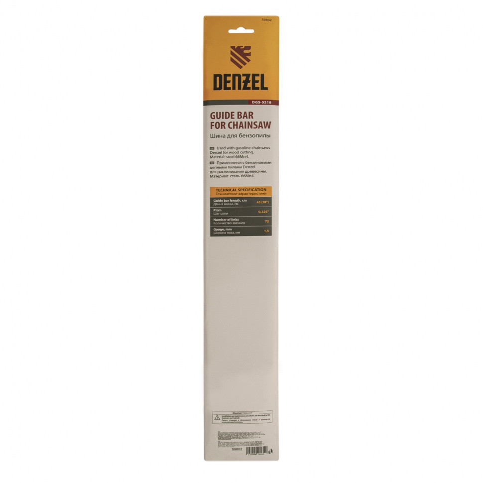 Шина для бензопилы DGS-5218, длина 45 см (18") шаг 0.325", паз 1.5 мм, 72 звена Denzel