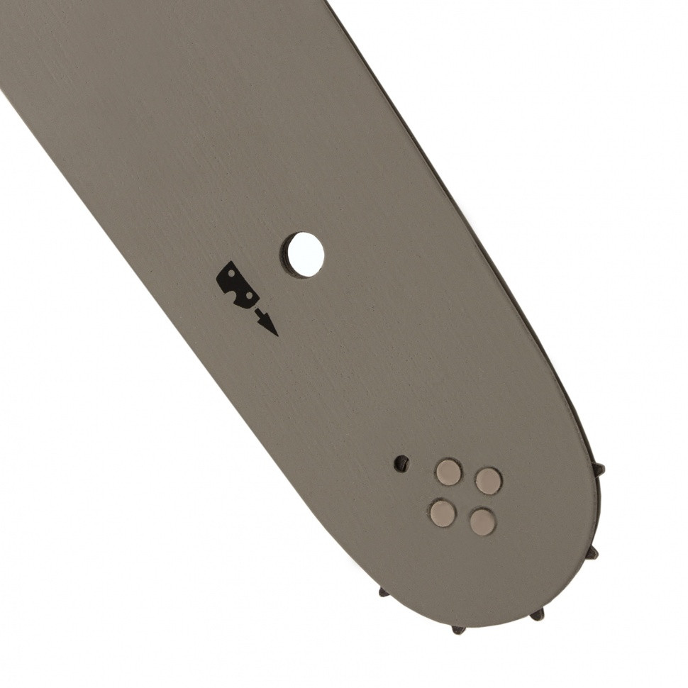 - Длительная эффективная работа — технологические каналы позволяют дозированно подавать смазочное масло на паз шины и способствуют его равномерному распределению по всей рабочей кромке, что продлевает срок службы пильной гарнитуры.