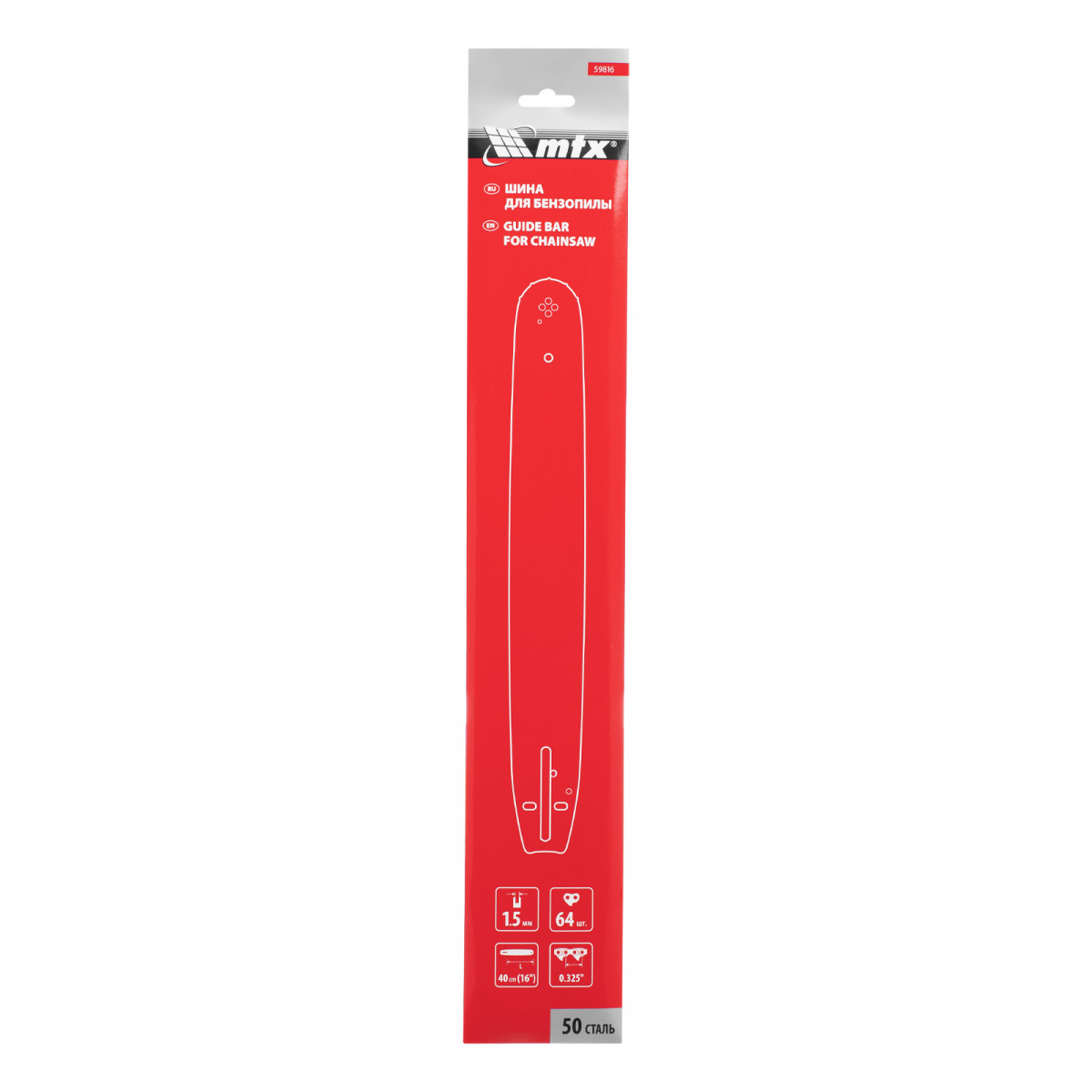 Шина для бензопилы, длина 40 см (16"), шаг 0,325", паз 1,5 мм, 64 звена// MTX