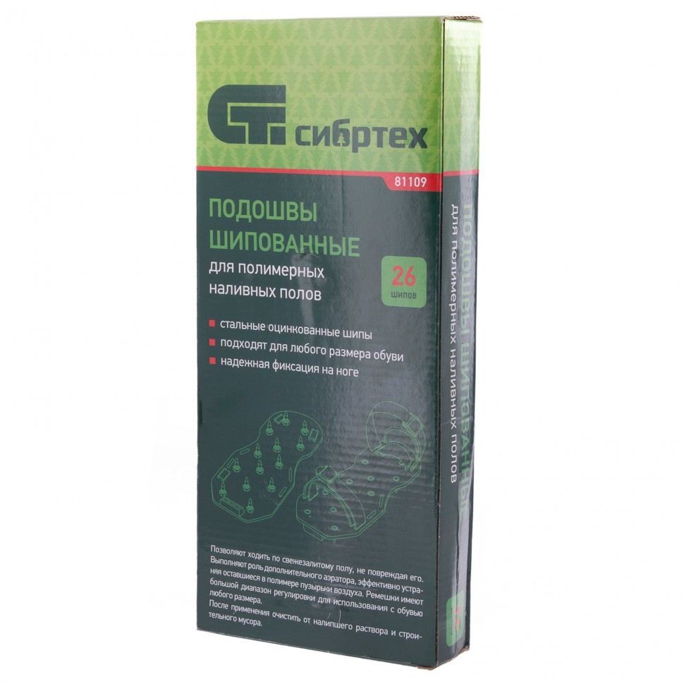 Шипованные насадки на обувь Сибртех 81109 предназначены для перемещения по непросохшему наливному полу. Шипы исключают повреждение свеженалитой поверхности и позволяют получить прочное и красивое напольное покрытие. Они выполняют роль дополнительного аэратора, эффективно устраняя оставшиеся в полимере пузырьки воздуха.