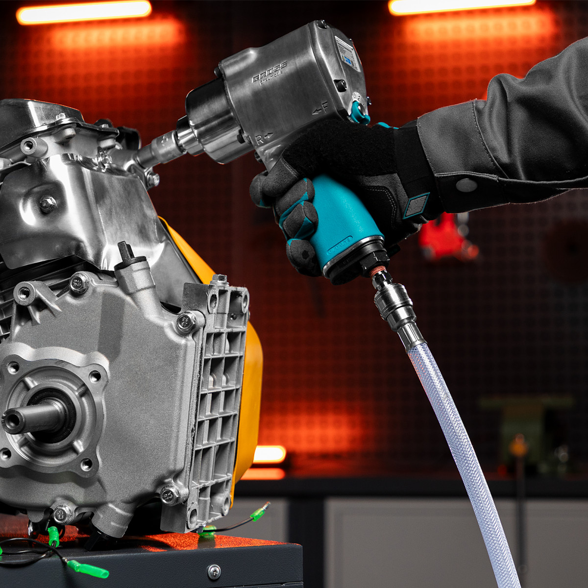 • Шланг можно быстро подключить к компрессору и пневматическим инструментам благодаря быстросъемным соединениям типа рапид.