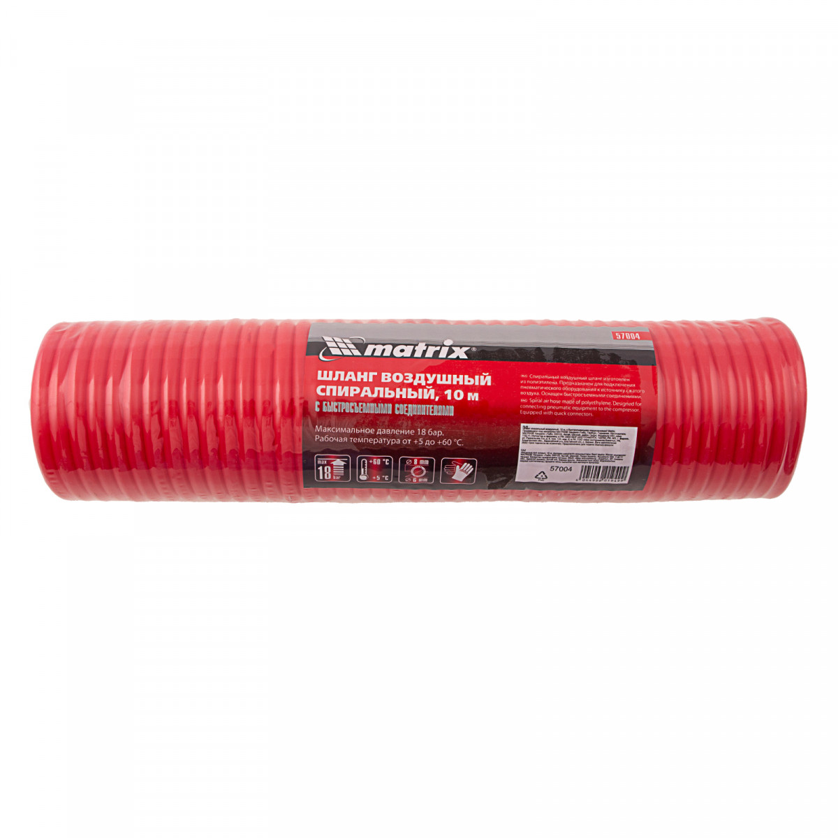 Спиральный воздушный шланг Matrix 57004 длиной 10 м, с быстросъемными соединениями, используется для подключения пневмоинструментов к компрессору. Изготовлен из легкого полиэтилена, за счет чего даже длительная работа не вызывает усталости. Имеет форму спирали, поэтому его не нужно скручивать после работы. Рукав пригодится в автосервисе, слесарной мастерской, а также во время отделочных работ.