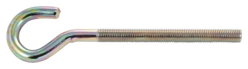 Если требуется прикрепить к стене или потолку крепежный элемент, на который нужно подвешивать какие-либо предметы или конструкции, то рекомендуется использовать крюк с метрической резьбой. Он представляет собой металлический стержень, один конец которого скручен в виде полукольца, а на другом нарезана резьба. Его вкручивают в стену или потолок из бетона и других прочных материалов. Предварительно сверлится отверстие и вставляется подходящий для таких целей дюбель.