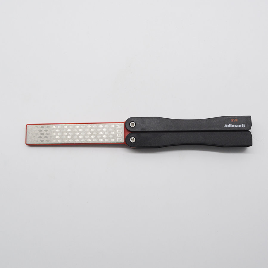 Складная точилка имеет карманный формат, и очень удобна для всевозможных путешествий, вылазок, поездок. Вы также можете при необходимости использовать её дома. У точильного приспособления две алмазные поверхности, которые имеют различный уровень зернистости. Может обрабатывать ножи различных типов.