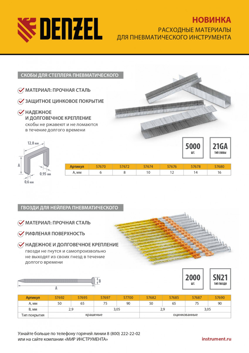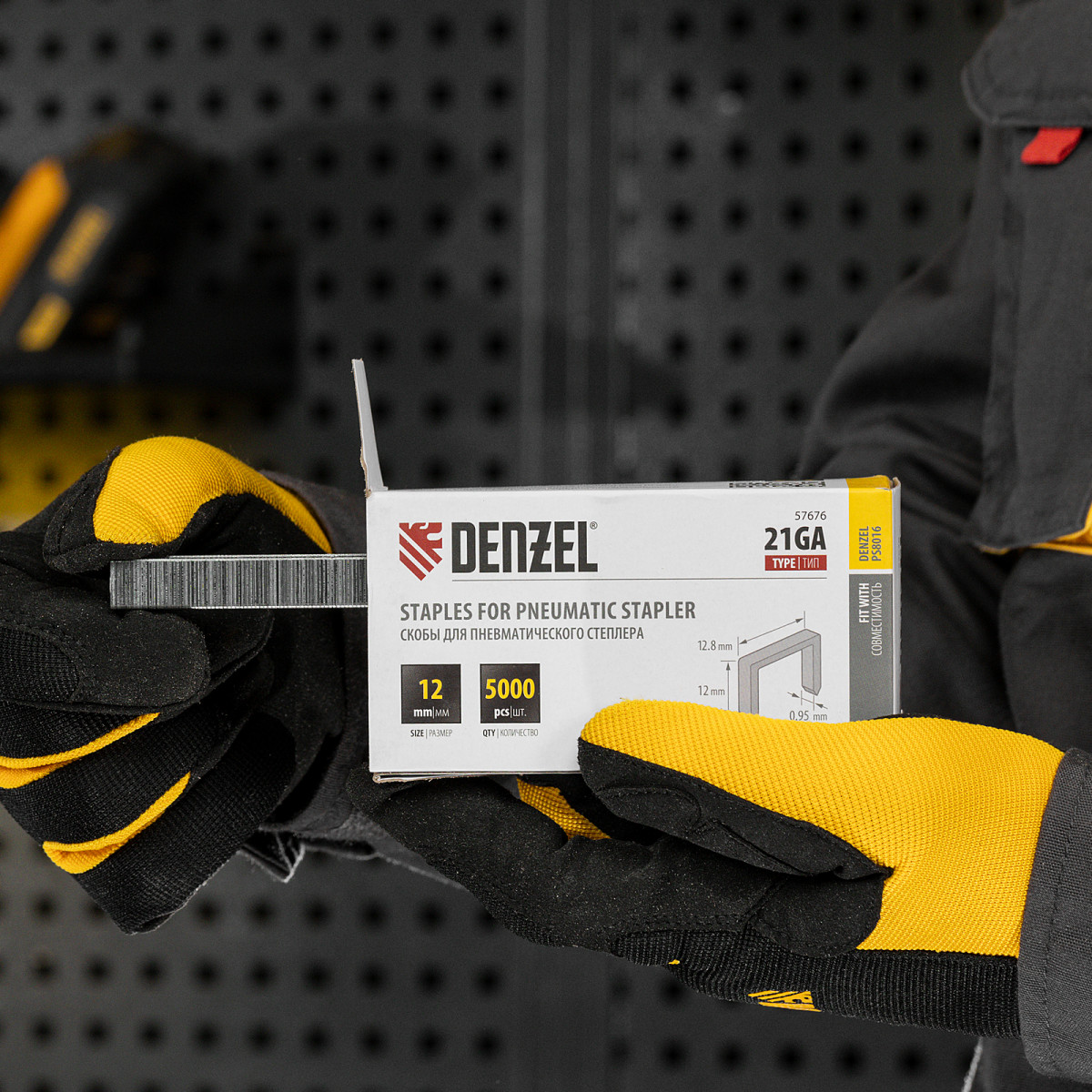 Скобы 21GA для пнев. степл., 12мм, шир. - 0,95мм, тол. - 0,6мм, шир. скобы - 12,8мм, 5000шт Denzel