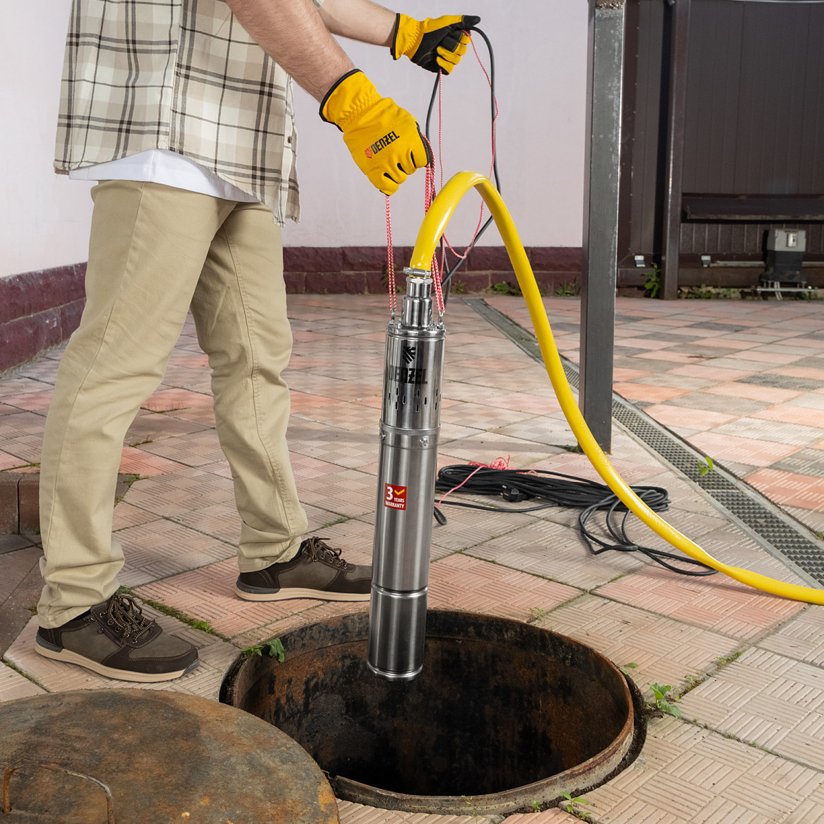• Простая установка — в верхней части корпуса имеются проушины для закрепления троса, при помощи которого насос погружается в воду.