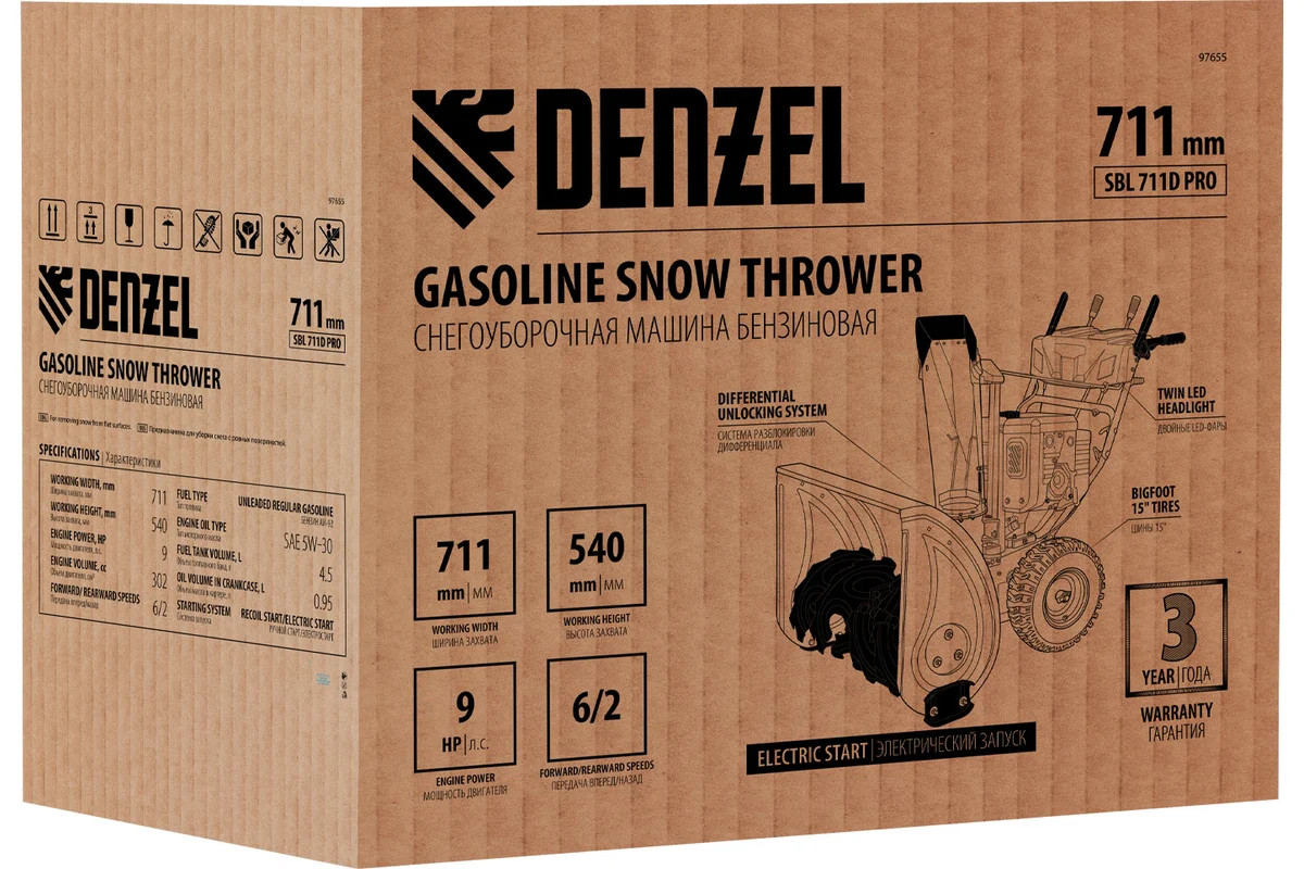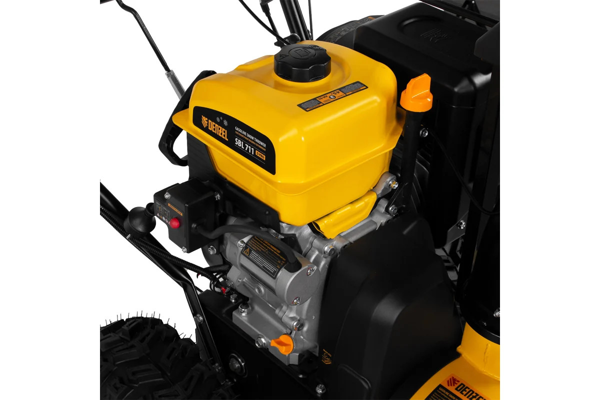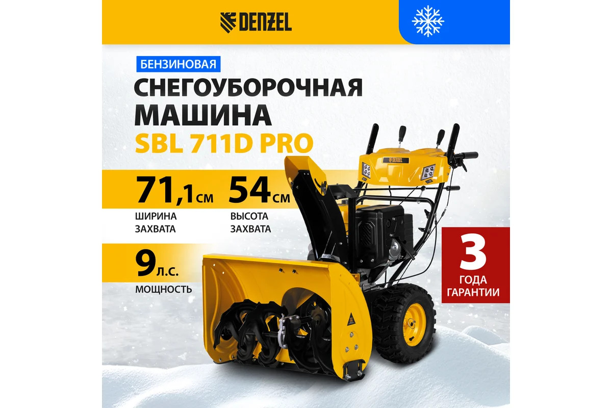 Бензиновый снегоуборщик Denzel SBL 711D PRO, 302cc 97655 - профессиональный выбор для коммунальных служб, организаций, а также людей ценящих комфорт, функционал и эстетичный внешний вид. Машина предназначена для уборки территорий загородных домов, коттеджей, подъездных дорог и улиц СНТ, парковок и городских дворовых территорий. Двигатель зимней серии объемом 302 см3 с увеличенным крутящим моментом, кожух шнека с шириной 711 мм и высотой захвата 540 мм обеспечивают эффективную и быструю уборку больших сугробов даже слежавшегося снега с ледяной коркой.