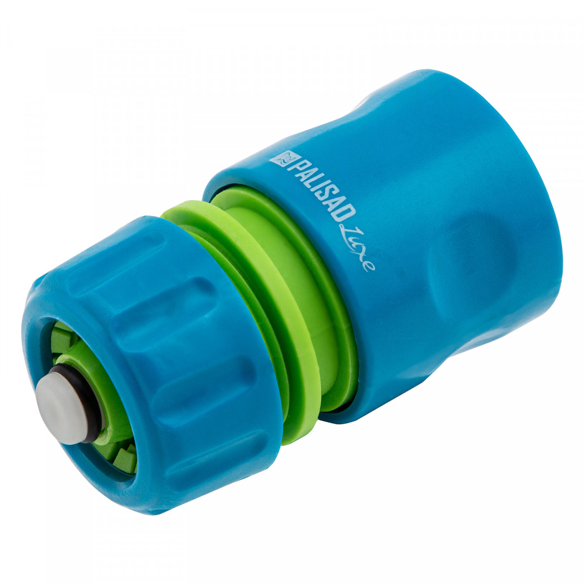 Пластмассовый однокомпонентный быстросъемный соединитель Palisad Luxe 66258 с клапаном «аквастоп» используется для подключения шланга диаметром 1/2" к распылителю.