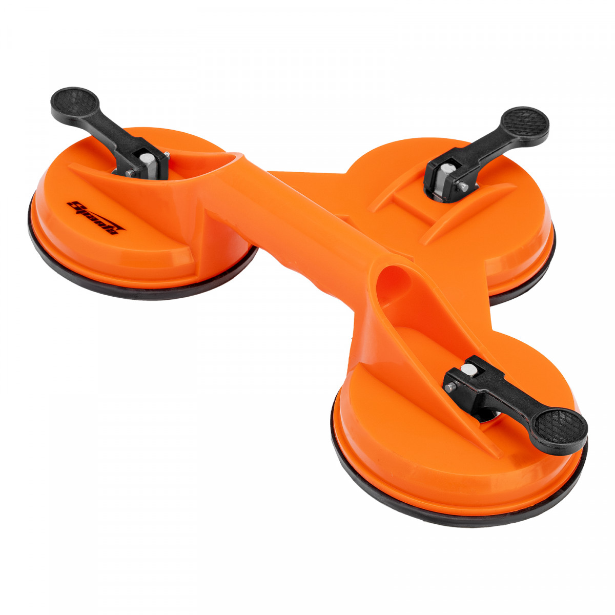 Тройной пластиковый стеклодомкрат Sparta 875156 — устройство для удержания, переноски и установки зеркал, стекол, столешниц, кафельной плитки и других гладких материалов. Три вакуумные присоски имеют зажимы, которые бережно, но крепко фиксируют их на поверхности. Стеклодомкрат будет полезен во время ремонта, а также пригодится в быту.