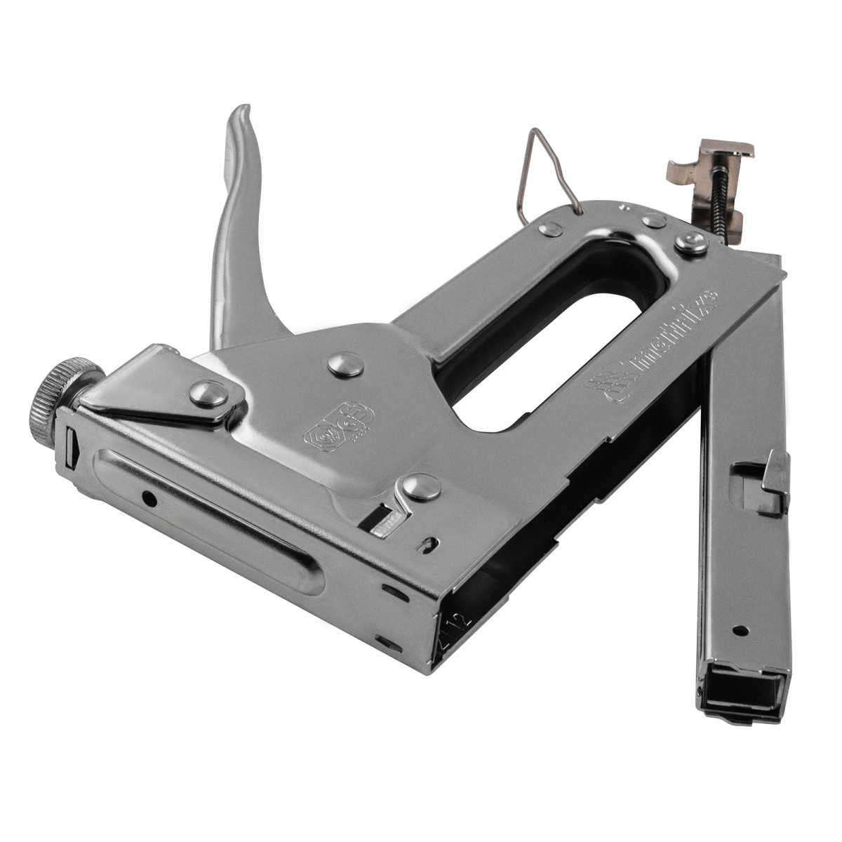 Регулируемый мебельный степлер Matrix 40902, предназначенный для скоб типа 53 размером 4-14 мм, используется для быстрого скрепления с деревянным основанием листовых материалов — фанеры, картона, оргалита, ДВП, ДСП, пленки или утеплителя. Степлер пригодится для сборки и обивки мебели, монтажа теплоизоляции, а также будет полезен в быту. Поставляется со скобами в количестве 50 штук.