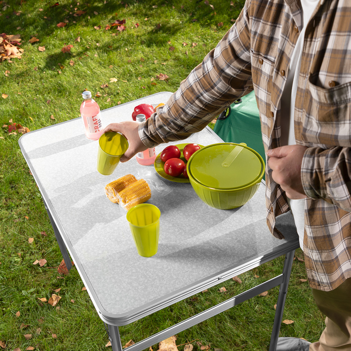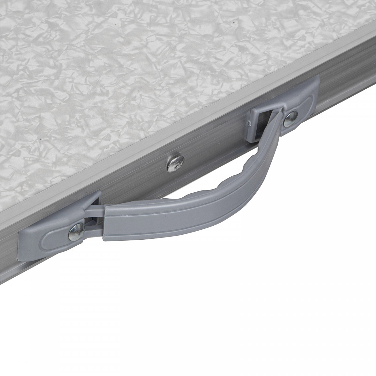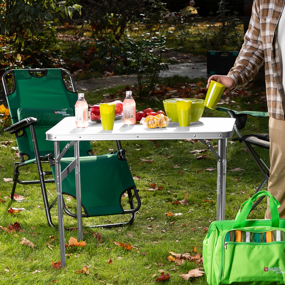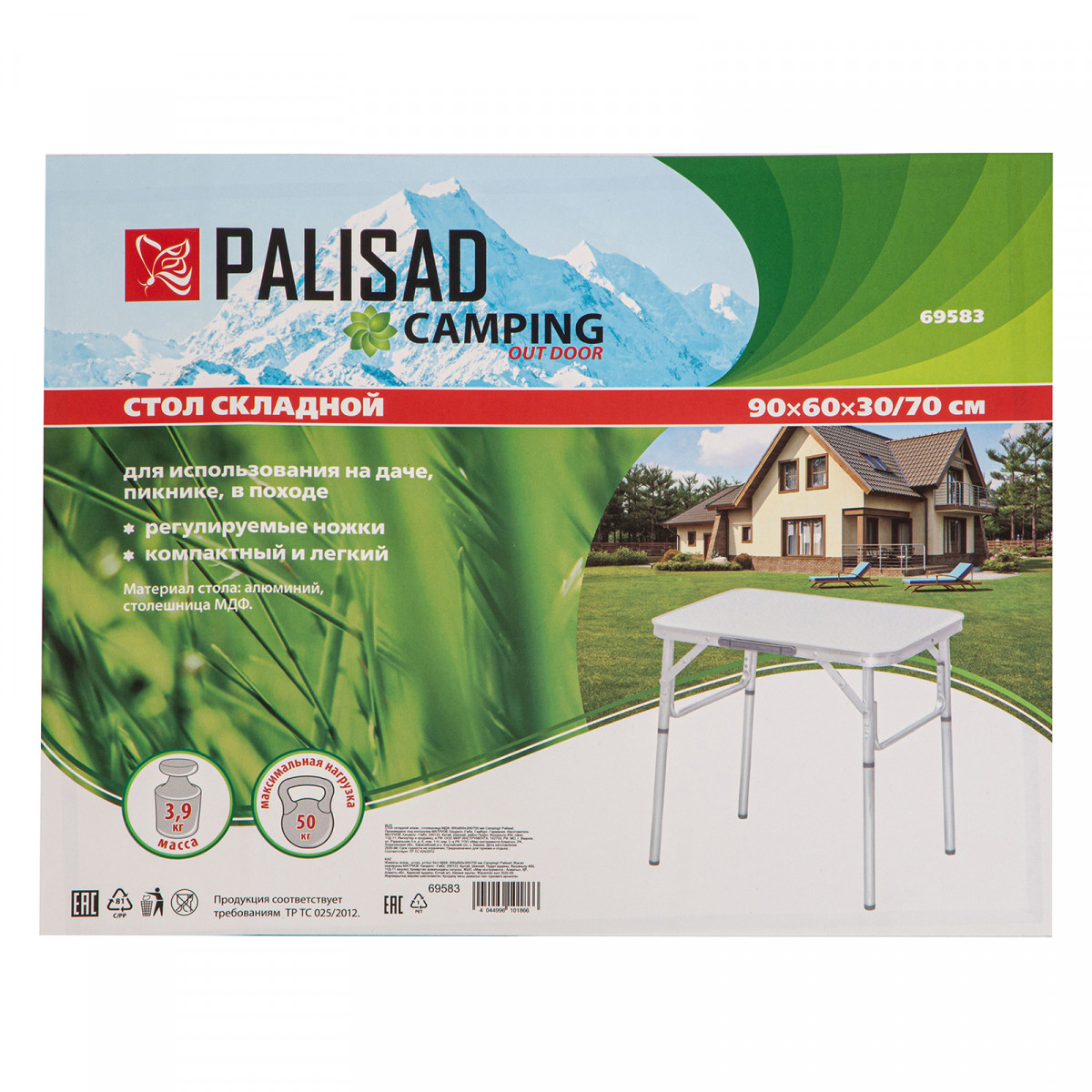 Складной стол Palisad Camping 69583 размером 900 х 600 х 300 / 700 мм, с алюминиевыми ножками и столешницей из МДФ, позволяет с комфортом разместиться компании из нескольких человек. Надежная столешница из МДФ легко выдерживает вес приборов и блюд с пищей. Высота ножек регулируется и может составлять 30 или 70 см. Ножки изготовлены из алюминиевого сплава, что облегчает конструкцию. Стол весит 4,22 кг, поэтому его легко перемещать. Он будет полезен для организации отдыха на природе, а также пригодится во время приема гостей в доме.
