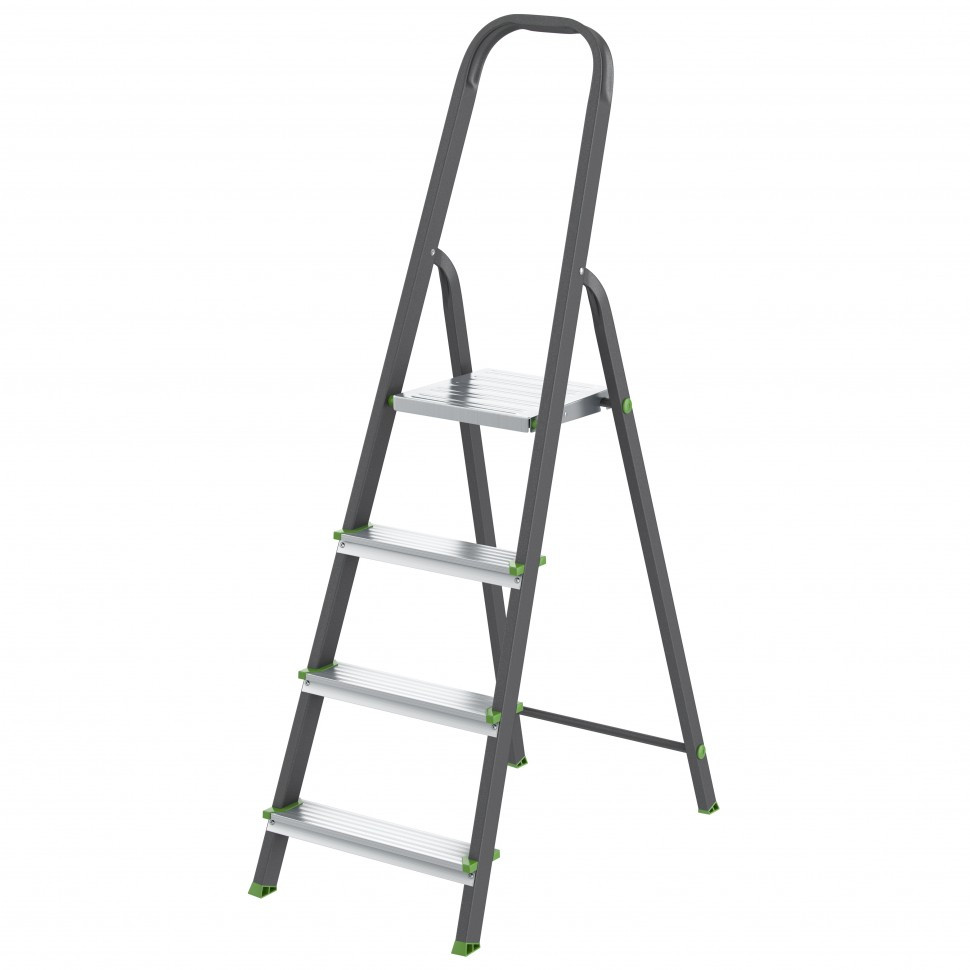 Стремянка СИБРТЕХ 4 ступени 97954 имеет стальные опорные направляющие и алюминиевые ступени. Широкие профилированные ступени обеспечивают безопасный спуск/подъем, удобство при длительной работе на высоте. Изделие оснащено пластиковыми рифлеными наконечниками, которые исключают скольжение по поверхности и не повреждают покрытие пола. Благодаря наличию высокой дуги работник может безопасно выполнять различные работы на высоте.